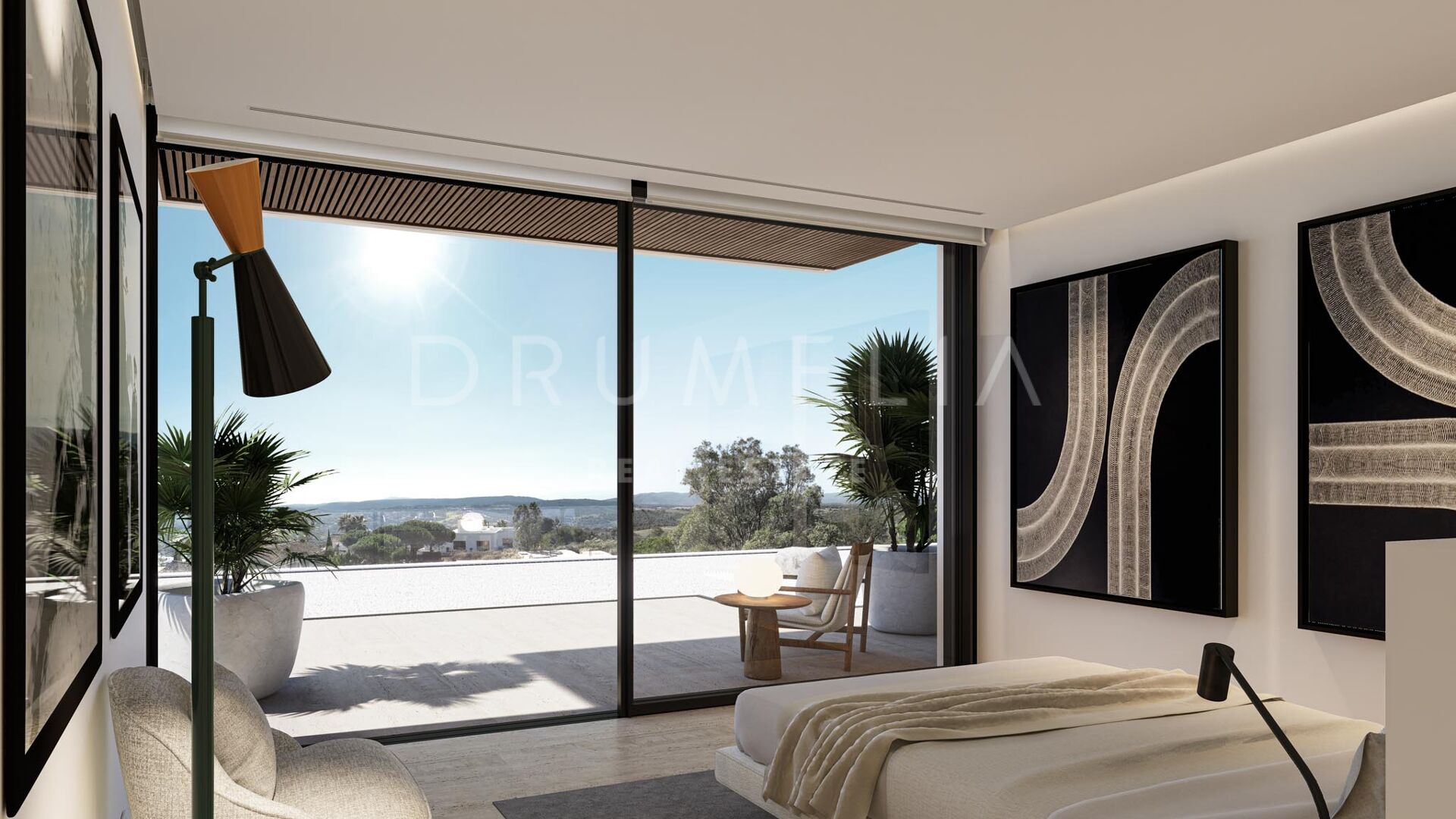 Deze unieke villa met 4 slaapkamers wordt gekenmerkt door de moderne architectonische lijnen en beslaat drie verdiepingen, in harmonie met de natuurlijke contouren van het land. Gelegen op een van de hoogste toppen van Sotogrande, belichaamt het eenvoud terwijl het de uitzonderlijke locatie en het adembenemende uitzicht op de Middellandse Zee, de Rots van Gibraltar en de noordkust van Afrika benadrukt.