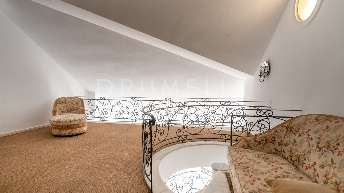 Wat deze woning van 165 m² met 2 verdiepingen echt uniek maakt, is het overvloedige natuurlijke licht en vooral de terrassen van 40 m² die de mogelijkheid bieden om de hele dag door van de zon te genieten. Het penthouse in het prachtige gebouw ligt op het zuidwesten en biedt adembenemend uitzicht op de golfbanen Las Brisas en Los Naranjos, evenals op de iconische berg La Concha. De hoofdverdieping van het penthouse heeft een royale woon- en eetkamer met een gezellige open haard en glazen deuren die uitkomen op het terras. De aparte keuken combineert hout en steen en is uitgerust met een bar die via ramen naadloos kan worden verbonden met het woongedeelte. De hoofdverdieping heeft ook 3 slaapkamersuites en 3 badkamers. De trap leidt naar de tweede verdieping, waar een prachtige galerieruimte een vleugje luxe toevoegt aan het pand met zijn hoge, goed verlichte plafonds in de woon- en eetkamers.