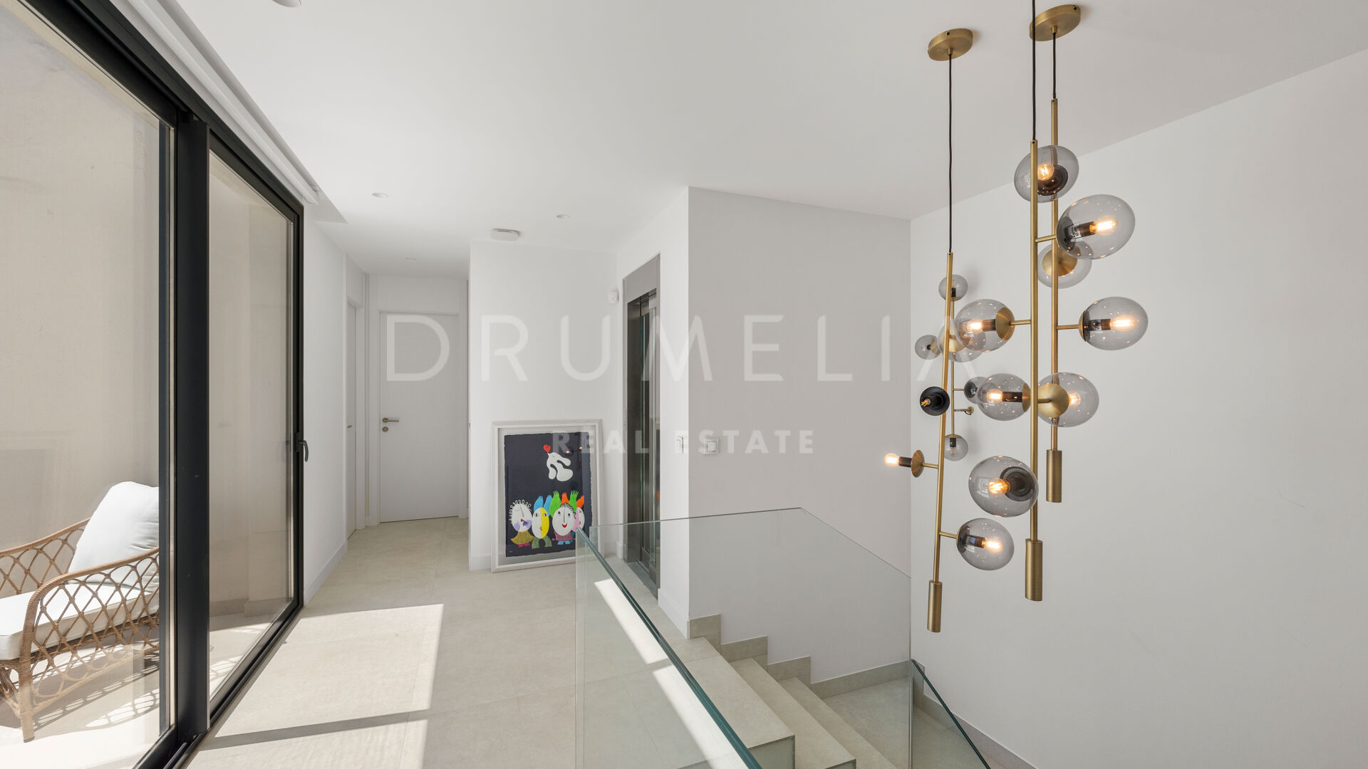 Op het tweede niveau is er een en-suite hoofdslaapkamer met opvallend uitzicht, kleedkamer en privéterras om te genieten van het prachtige uitzicht op zee, twee slaapkamers die een complete badkamer delen en een terras met toegang tot het solarium.