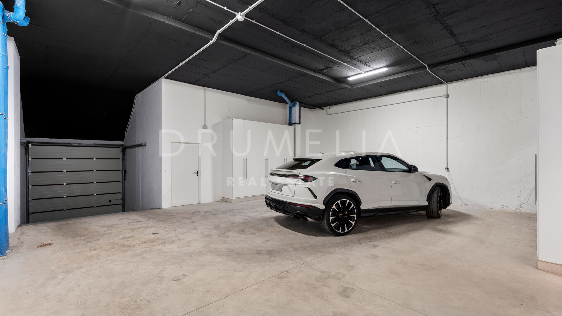Het solarium heeft een ontspanningsruimte en een woongedeelte met de mogelijkheid voor een buitenkeuken en jacuzzi. Op de kelderverdieping is er een garage voor 4/5 auto’s en een berging.