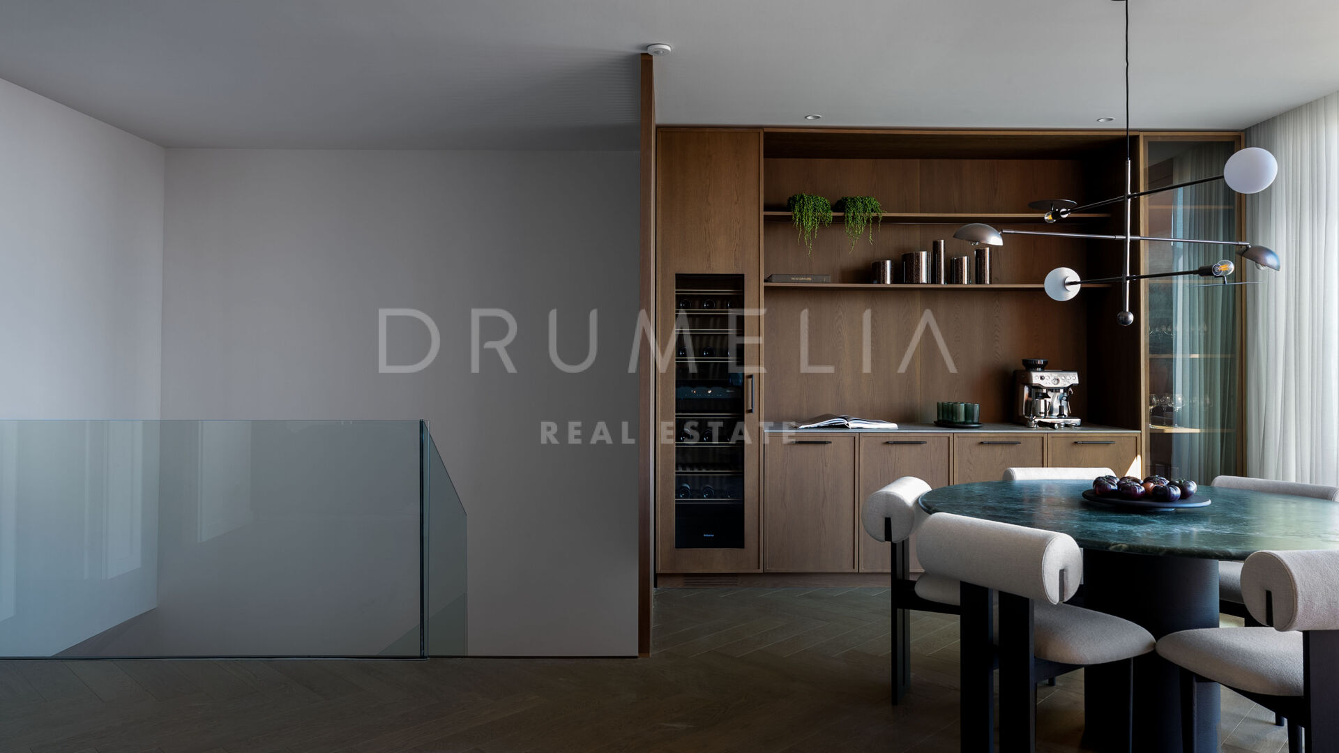Panoramisch zee- en bergzicht vormt een belangrijk kenmerk van de woning. Royale terrassen verlengen de leefruimtes naar buiten en maken het mogelijk om het hele jaar door van het buitenleven te genieten.