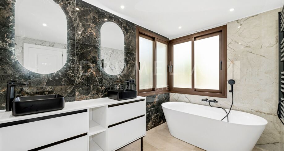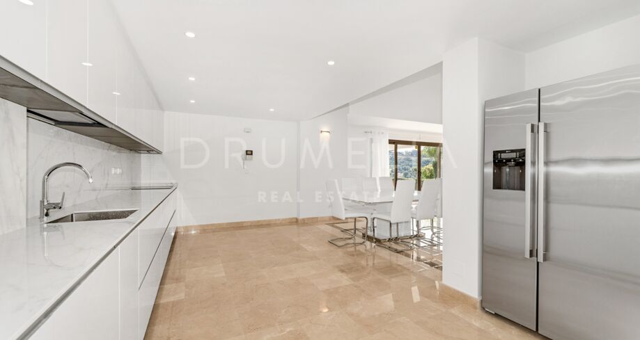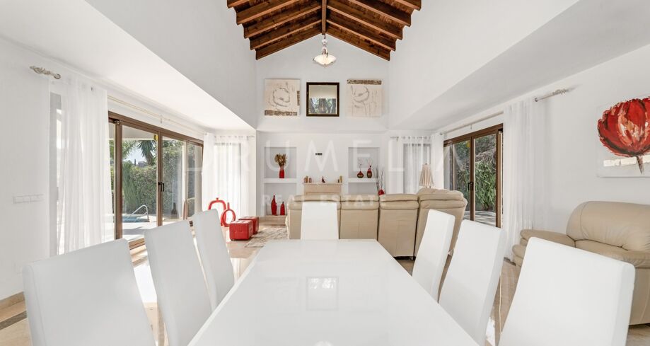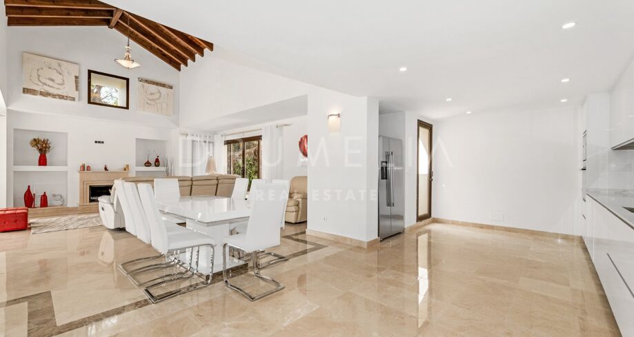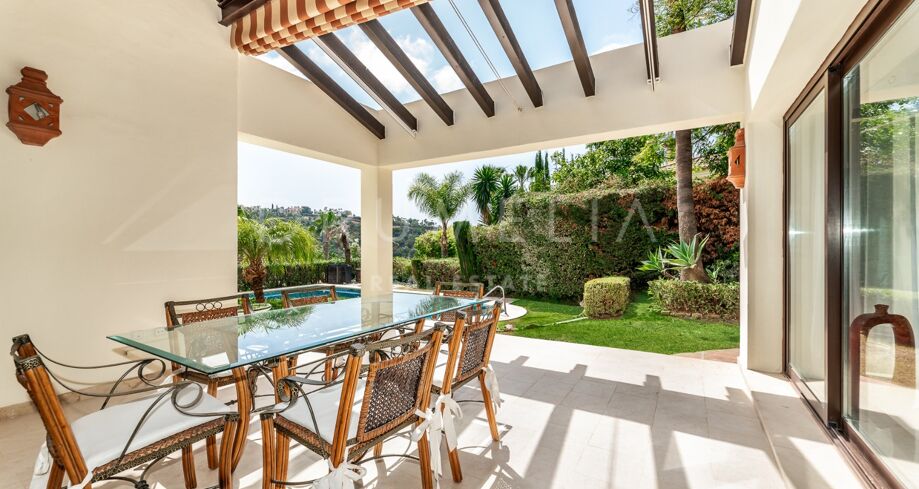 De buitenruimtes van het pand zijn ontworpen voor ontspanning en vermaak, met een privézwembad. Het pand wordt omringd door zorgvuldig onderhouden tuinen en biedt een ideale omgeving om buiten te eten en te genieten van het prachtige uitzicht. Gelegen in het gewilde Los Arqueros gebied, heb je gemakkelijk toegang tot de gerenommeerde Los Arqueros Golf en Country Club, met een volledig uitgeruste fitnessruimte, restaurants en een bowlingbaan, evenals de voorzieningen van San Pedro de Alcantara op slechts een klein eindje rijden.