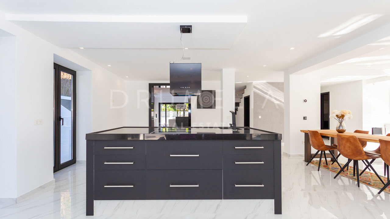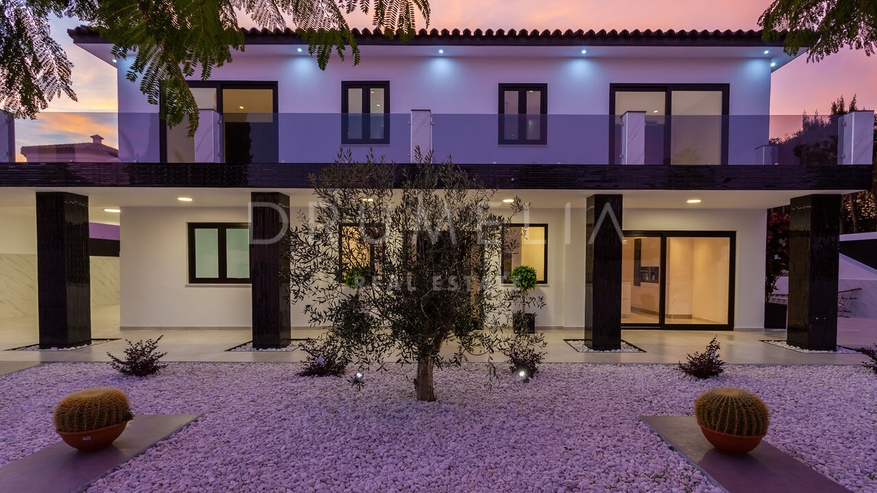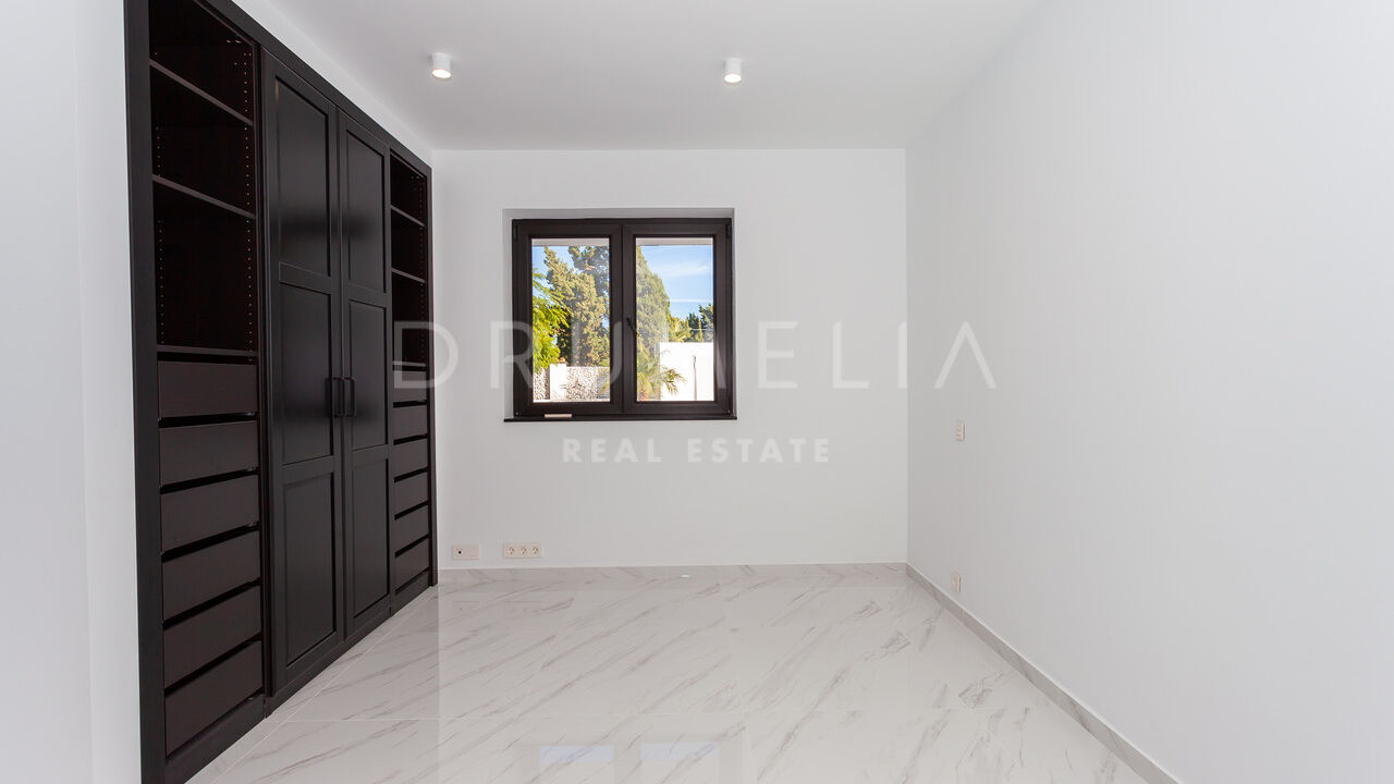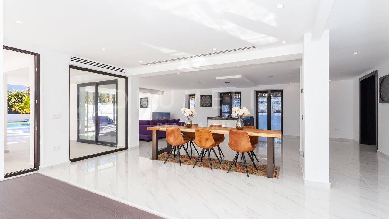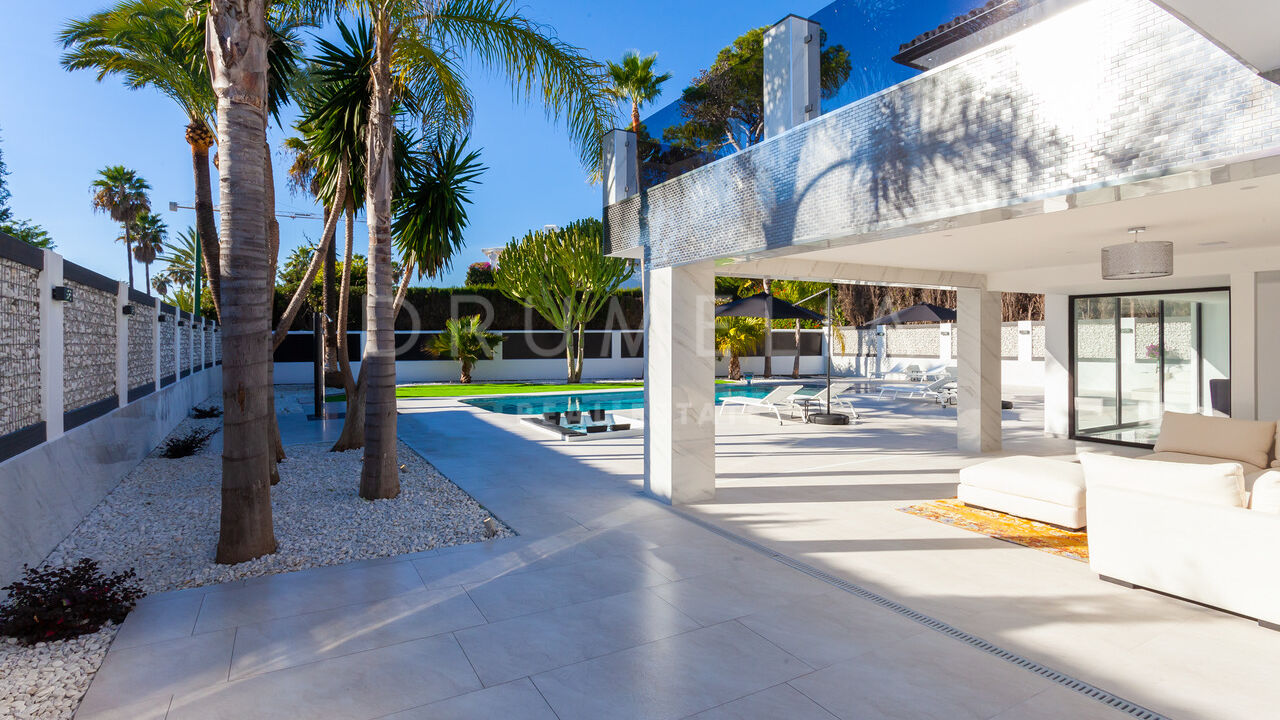 Een nieuw en volledig gerenoveerde villa aan het strand wordt te koop aangeboden in het mooie Los Monteros Playa in oostelijk Marbella