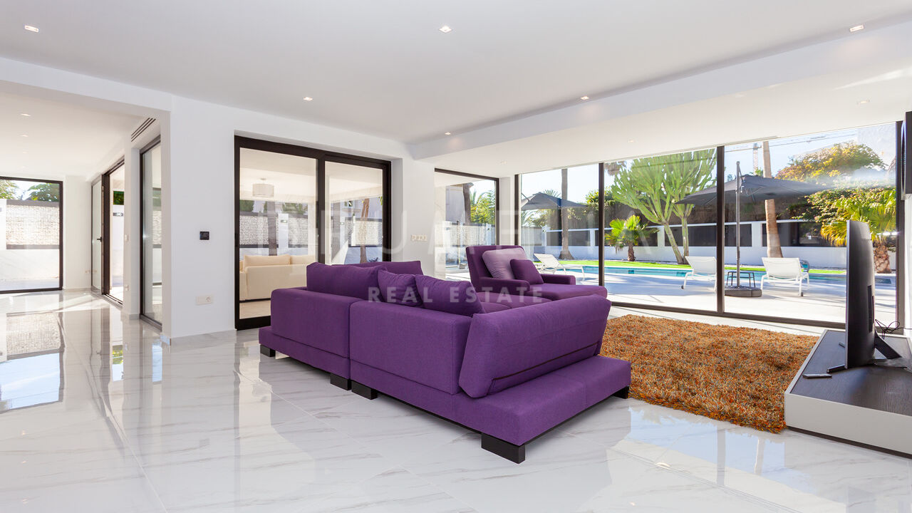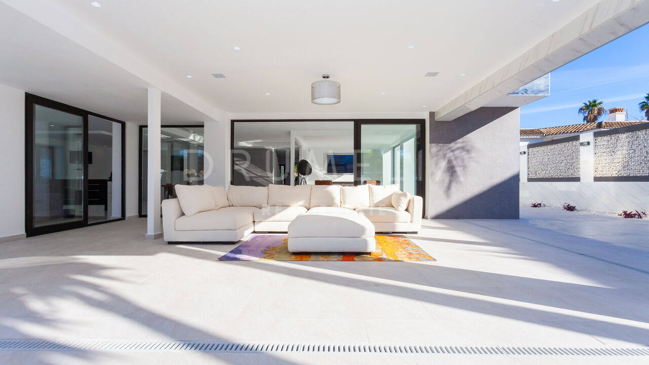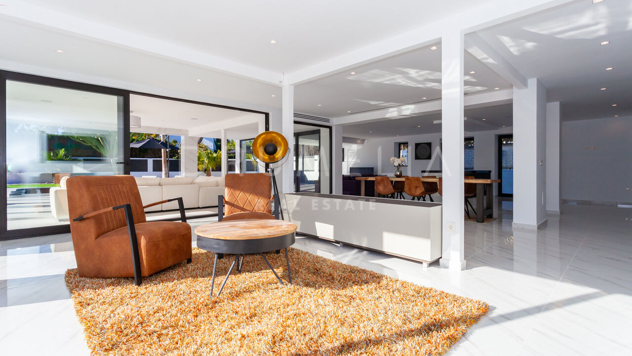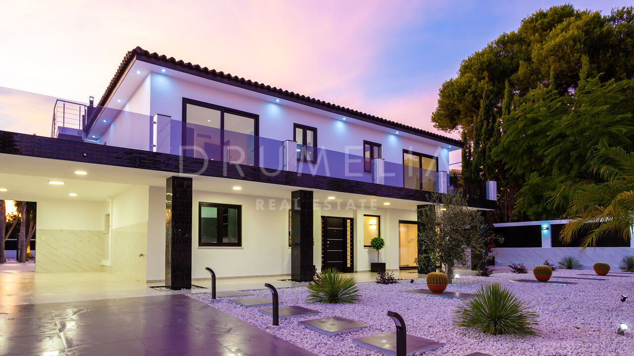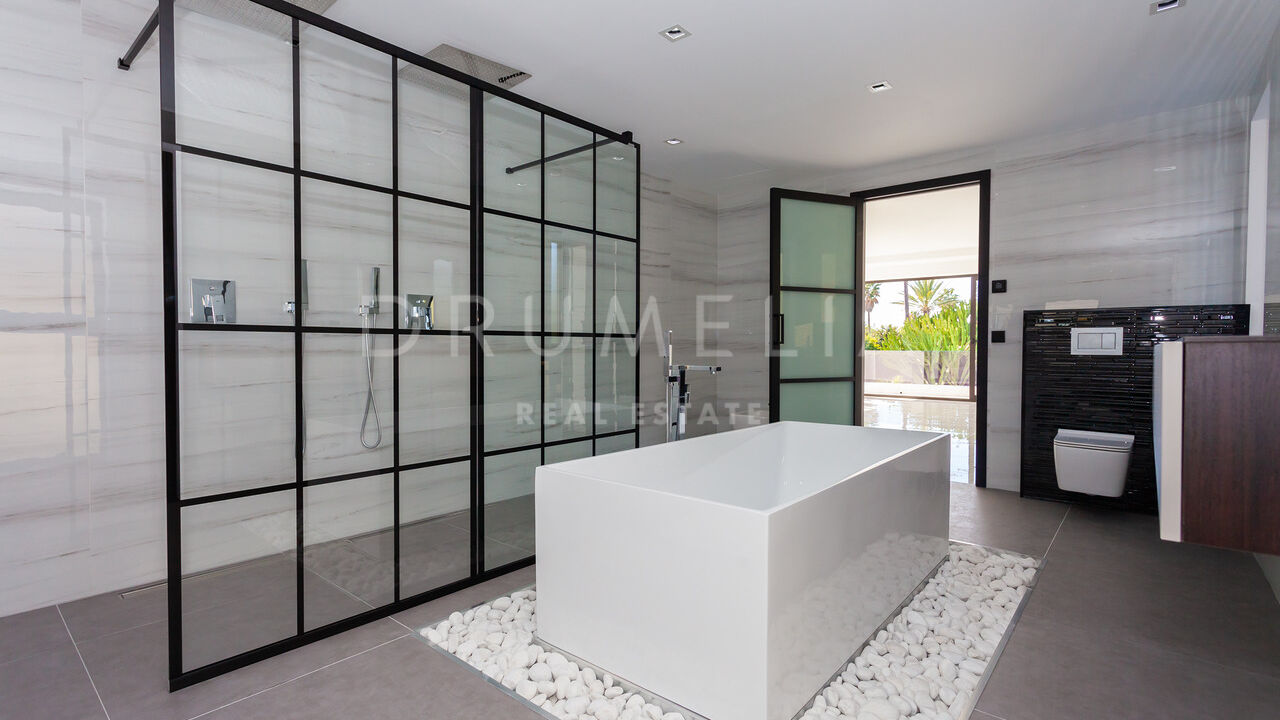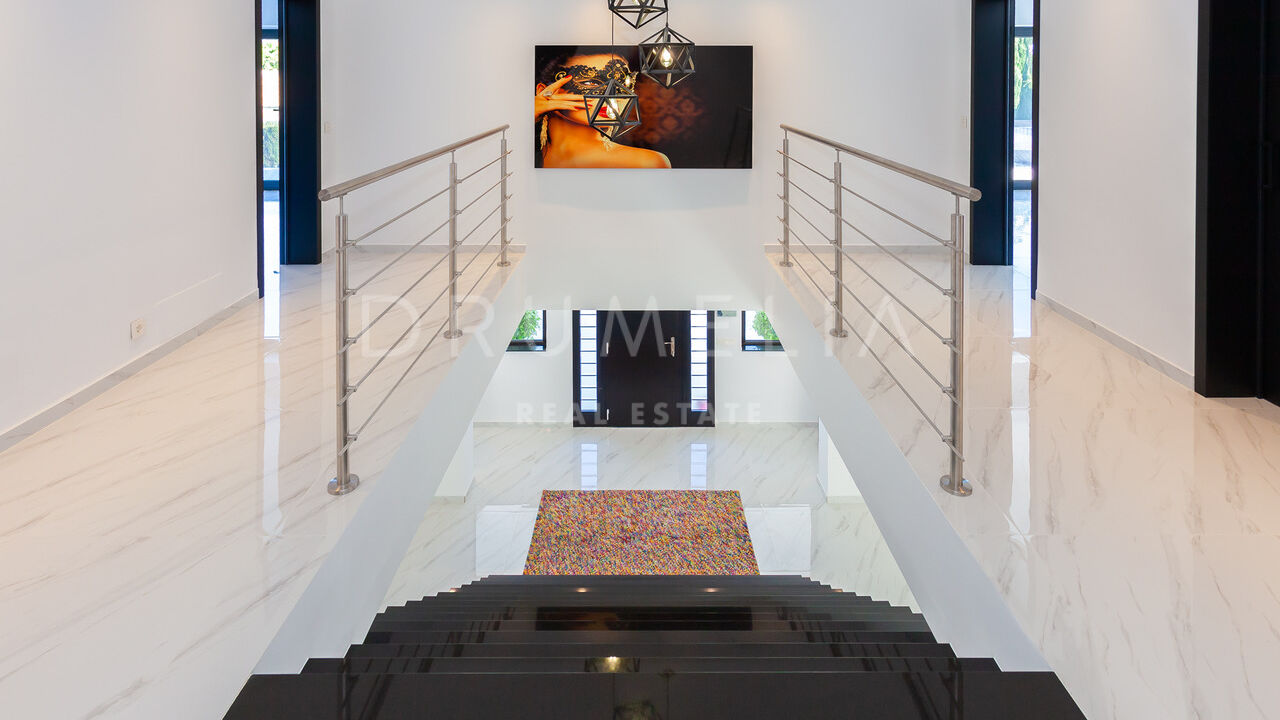 Deze fascinerende villa met exquise moderne architectuur en designer interieurs biedt een bijzondere kwaliteitslevensstijl op een toplocatie aan de Middellandse Zee. Welkom in het moderne paradijs!