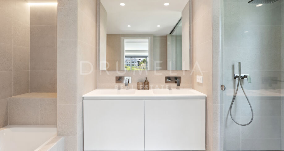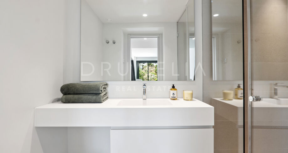 Een hedendaags meesterwerk gelegen in de pittoreske omgeving van Los Naranjos Hill Club in La Cerquilla, Nueva Andalucía. Deze nieuw ontwikkelde villa in Andalusische stijl biedt privacy en elegantie in een beveiligd complex. Het uitnodigende interieur van de woning wordt overspoeld met natuurlijk licht, met warme tinten en een ruime dubbele woonkamer – ideaal om te entertainen of om met familie te ontspannen.