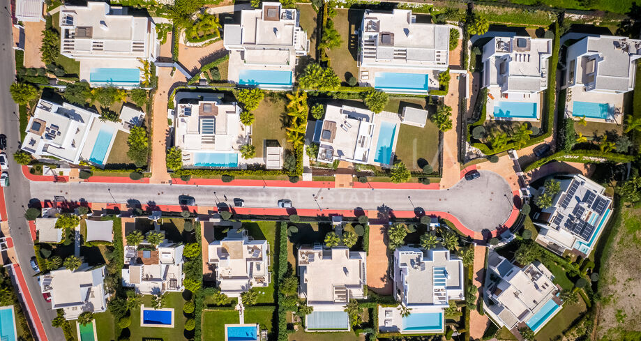Dit huis met 5 slaapkamers te koop in Nueva Andalucia is gebouwd volgens de hoogste specificaties en afwerkingen en biedt een uitzonderlijke kans om in moderne luxe te wonen in een van de meest gevraagde woonwijken van Marbella. Los Olivos is een ontwikkeling van moderne villa’s, omringd door hoogwaardige woningen in Nueva Andalucia, gelegen in een omheinde gemeenschap met 24-uurs beveiliging op de heuvel. De zachte helling, omgeven door olijfbomen, biedt een rustgevend uitzicht op de Middellandse Zee, de golf en de bergen. Rust en stilte heersen op deze bevoorrechte locatie op slechts enkele minuten afstand van diverse internationale scholen, uitstekende golfbanen, gastronomische ervaringen, stranden en alle voorzieningen van Nueva Andalucia en Puerto Banus.