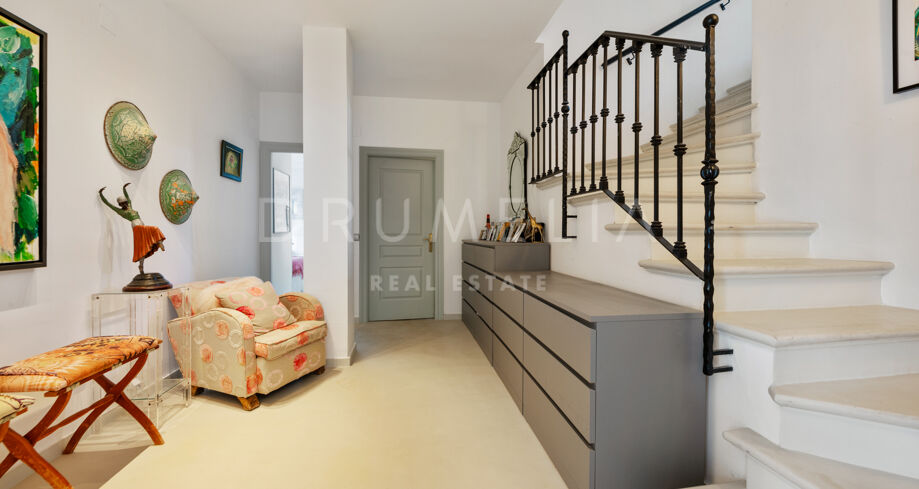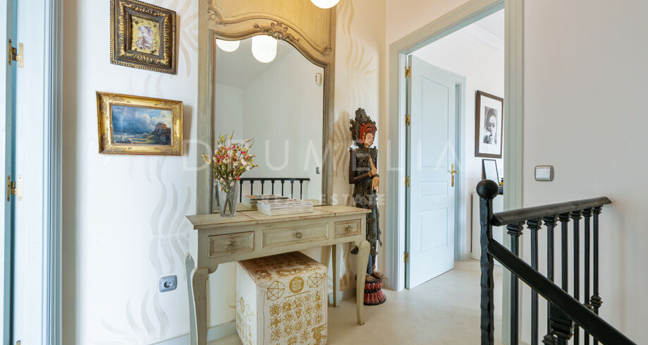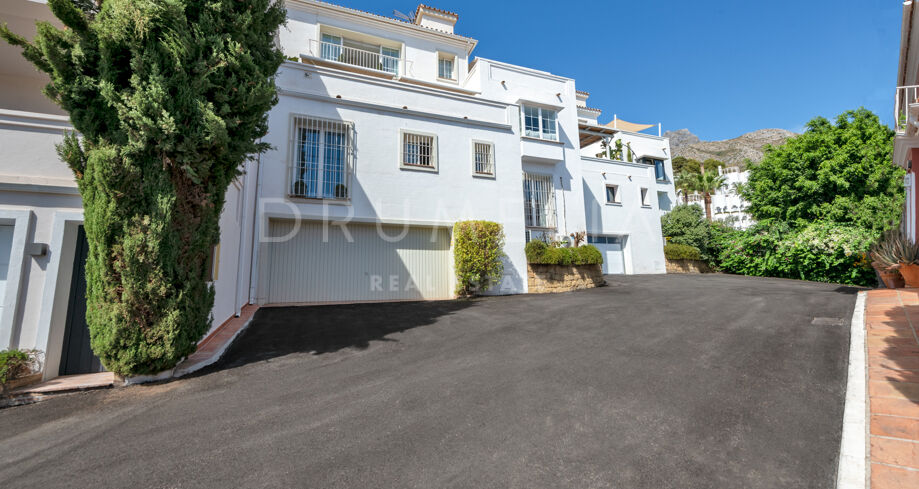Ontdek deze unieke herenwoning in de exclusieve, beveiligde gemeenschap van Marbella Hill Village, gelegen in het prestigieuze Marbella Hill Club. Omgeven door rust en natuur, grenst het aan het gewilde Sierra Blanca en ligt het op slechts enkele minuten rijden van de stranden, voorzieningen en de levendige sfeer van Marbella’s Golden Mile.