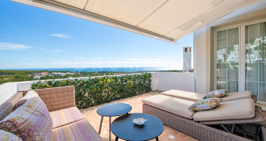 Elegante herenwoning met adembenemend zeezicht in Marbella Hill Village, Nueva Andalucía