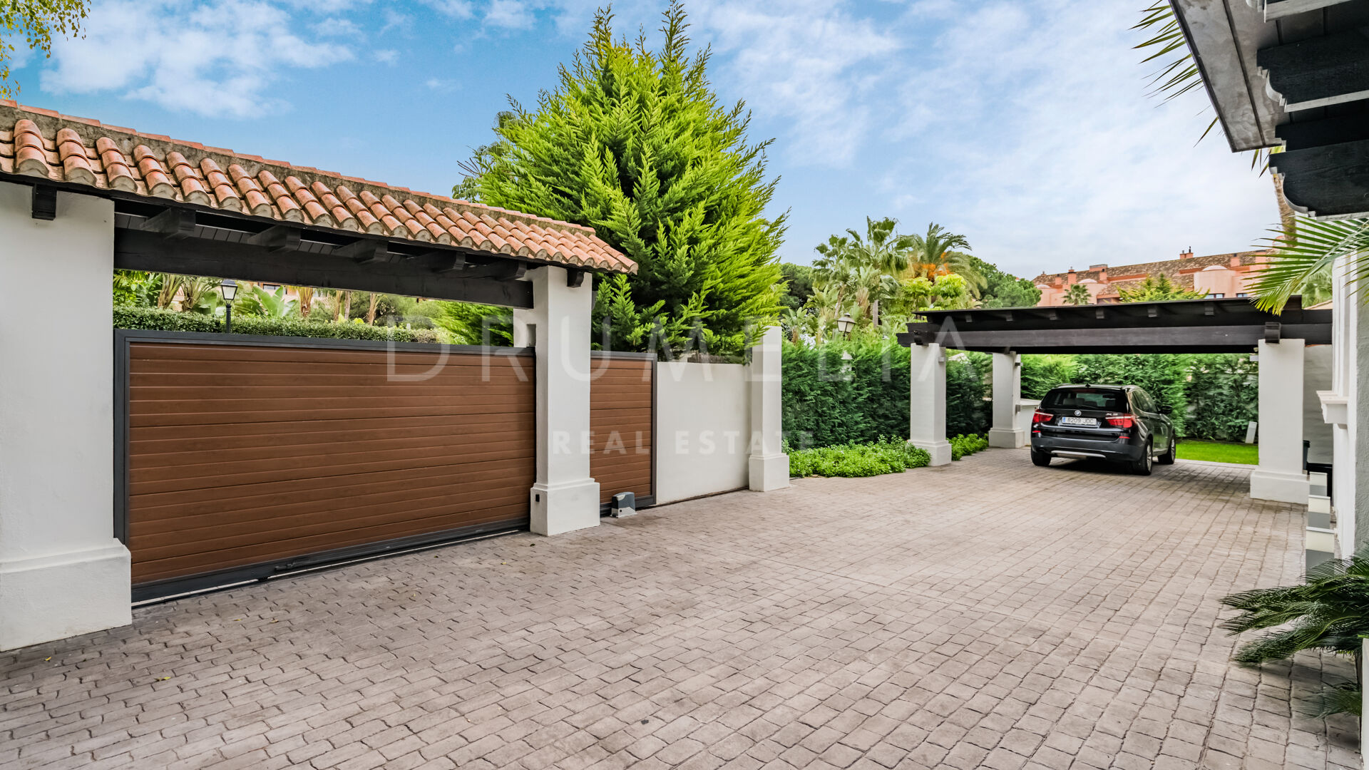 De woning wordt geleverd in uitstekende staat, met multifunctionele kelder, bioscoop, marmeren vloeren, glazen deuren, warm / koud airconditioning, inbouwkasten, grote carport, automatisch irrigatiesysteem, barbecue en alle andere luxe functies die het leven comfortabel en veilig maken. Spectaculaire buitenruimtes zijn ideaal voor ontspanning en amusement het hele jaar door: een groot zwembad met omheining, chill-out gebieden, goed verzorgde aangelegde tuinen met volwassen palmbomen, groene gazons en gesnoeide struiken. Alles is zorgvuldig aangelegd om te profiteren van het charmante uitzicht op de idyllische mediterrane omgeving die eruit ziet als een ansichtkaart.