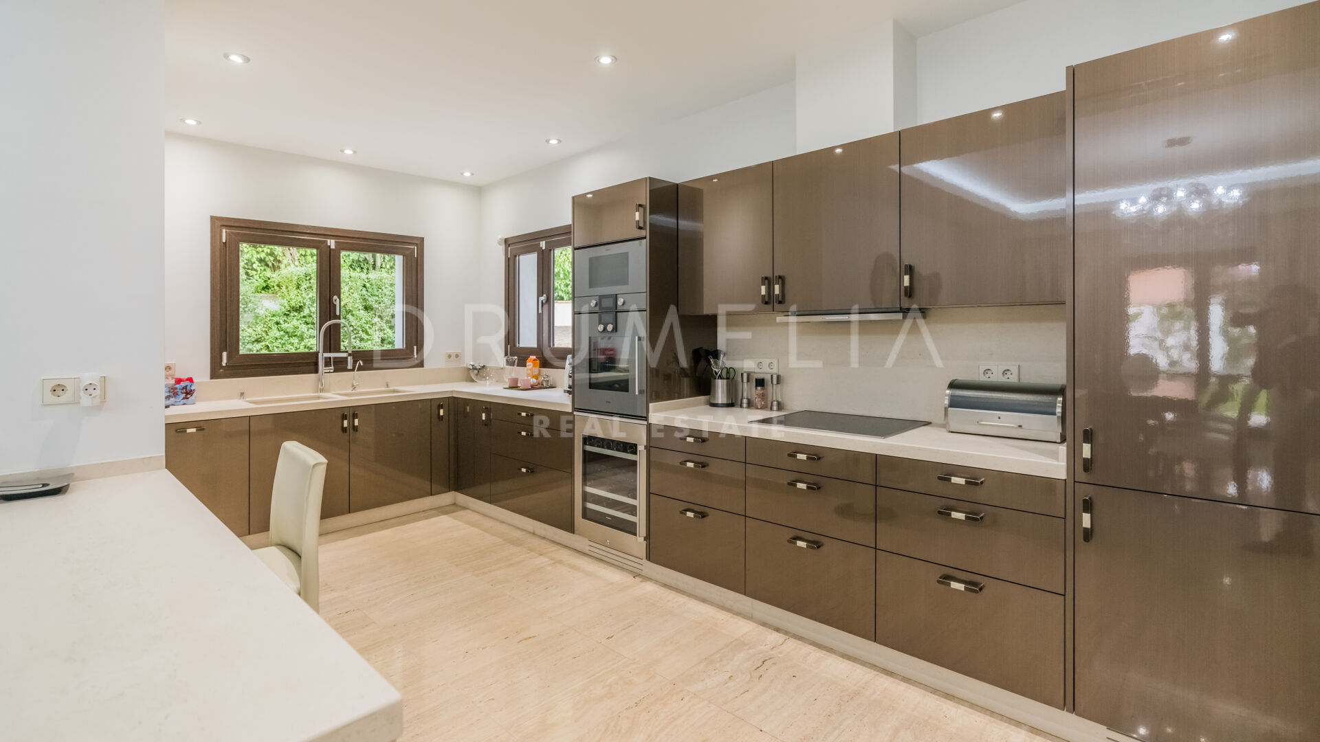 Unieke architecturale elementen, een maximum aan natuurlijk licht en natuurlijke tinten zijn essentieel voor het bereiken van de zeer aantrekkelijke look: chic, elegant en veel indruk makend. Milieuvriendelijke en natuurlijke materialen geven de ruimte een bijzondere flair en helpen bij het creëren van uitnodigende ruimtes die perfect zijn voor wonen, familiebijeenkomsten en amusement. Fascinerend modern klassiek design voelt warm en gastvrij aan met grote ramen die de zon binnenlaten, moderne open haard, eigentijdse armaturen, plafondspots en exquise kroonluchters, mooie en comfortabele meubelstukken en decor (optioneel). Onberispelijk!