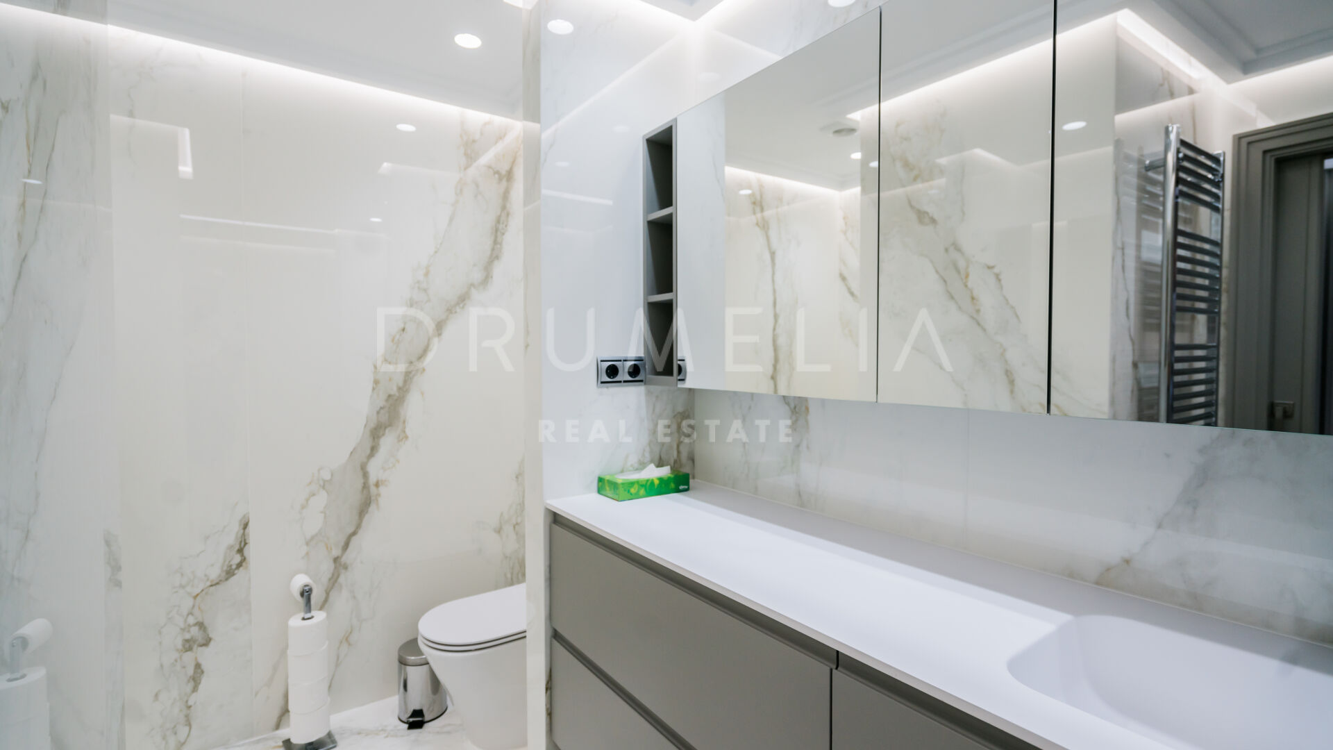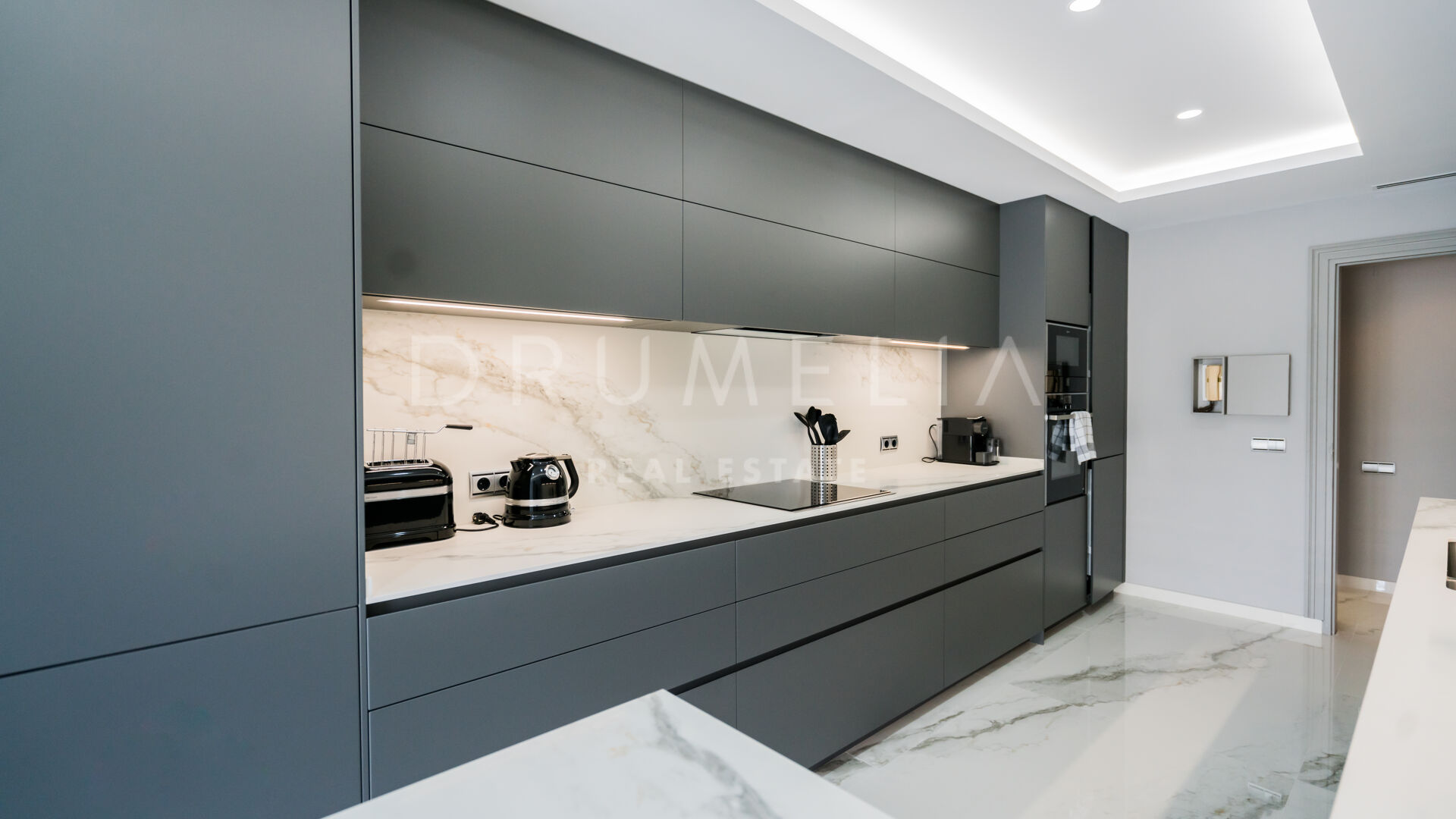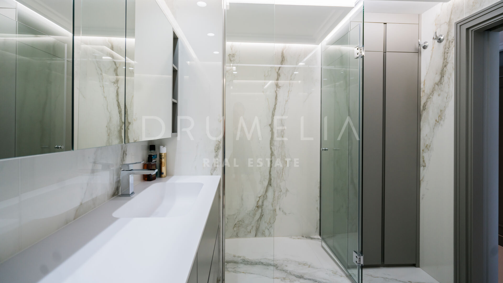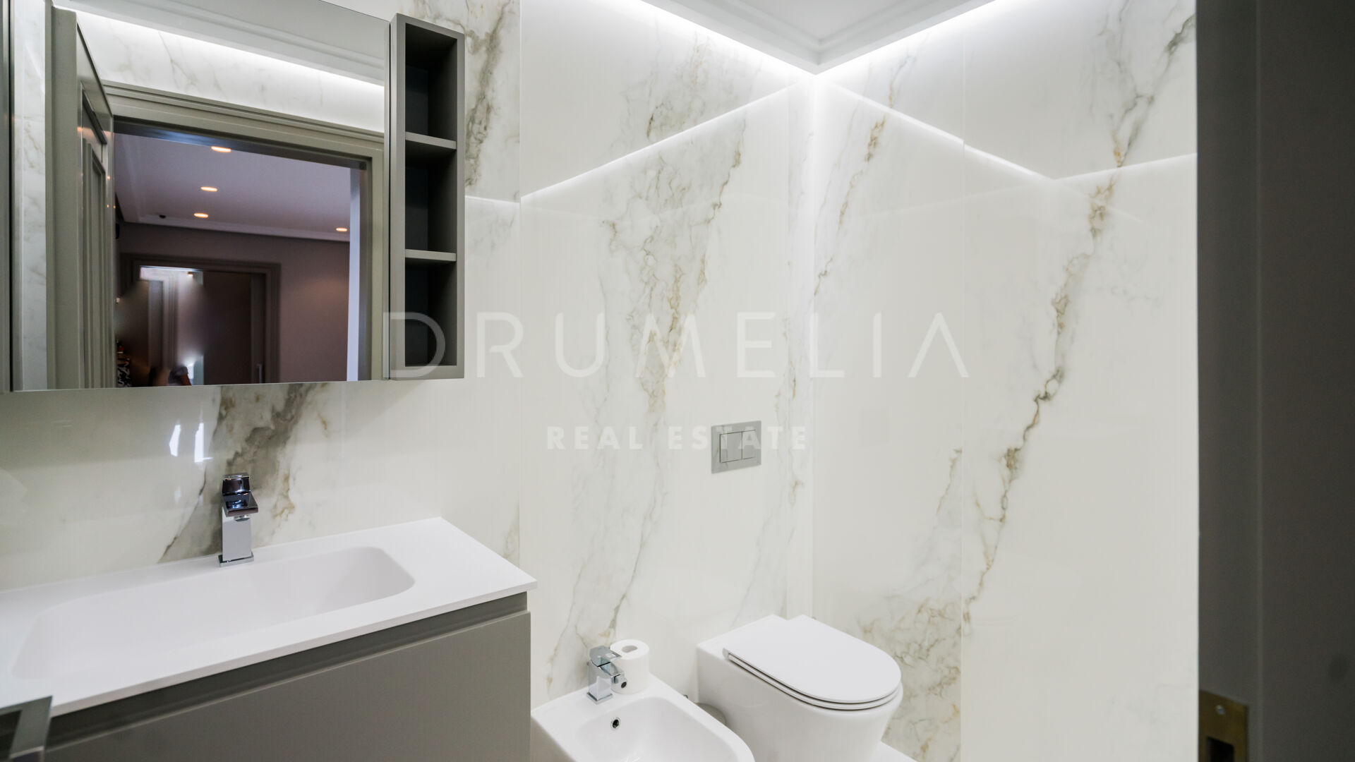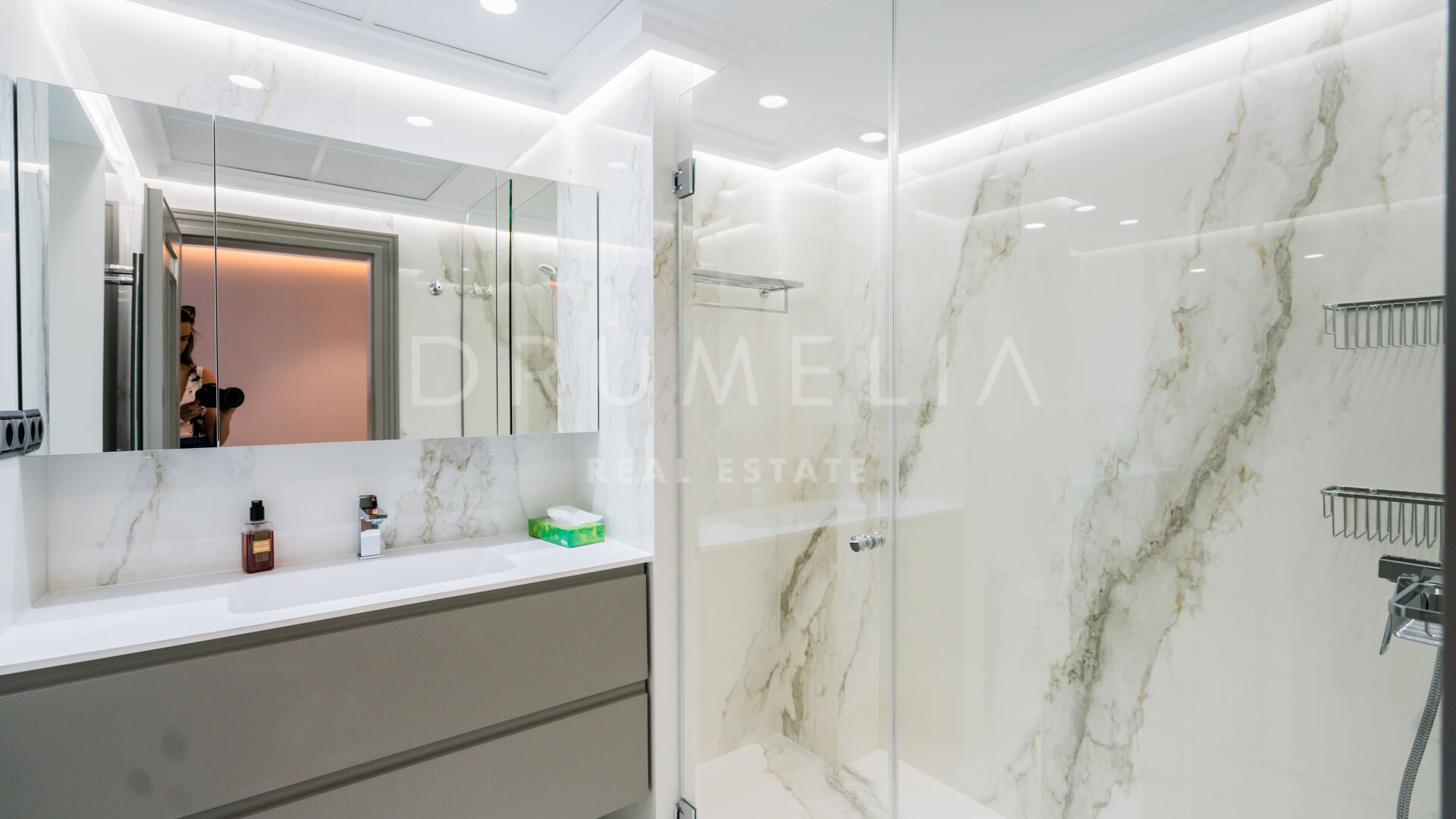 Onlangs gerenoveerd met speciale aandacht voor kwaliteit en stijl, wordt de woning geleverd in uitstekende, praktisch nieuwe staat met alle luxe voorzieningen die u nodig heeft voor het meest comfortabele leven (airconditioning, gerookt marmer, geavanceerde verlichtingsoplossingen, grote kasten voor praktische en ruimtebesparende opslag, glazen deuren, jaloezieën en zonneschermen die uitstekende bescherming bieden tegen de zon, etc.). Het heeft een modern interieur en wordt volledig gemeubileerd aangeboden met stijl en persoonlijkheid. De kamers zijn een elegante, luchtige en lichte omgeving, en we spreken zowel van natuurlijk licht als van zorgvuldig gekozen verlichting. Het oogstrelende neutrale kleurenpalet voegt direct eigentijdse aantrekkingskracht toe en maximaliseert het gevoel van ruimte en rust.