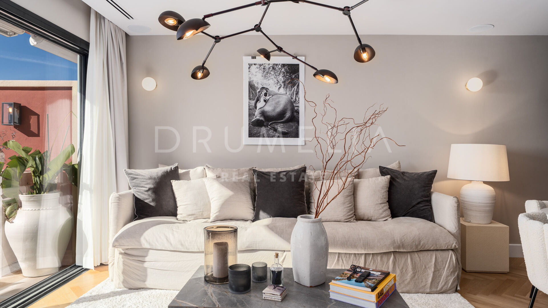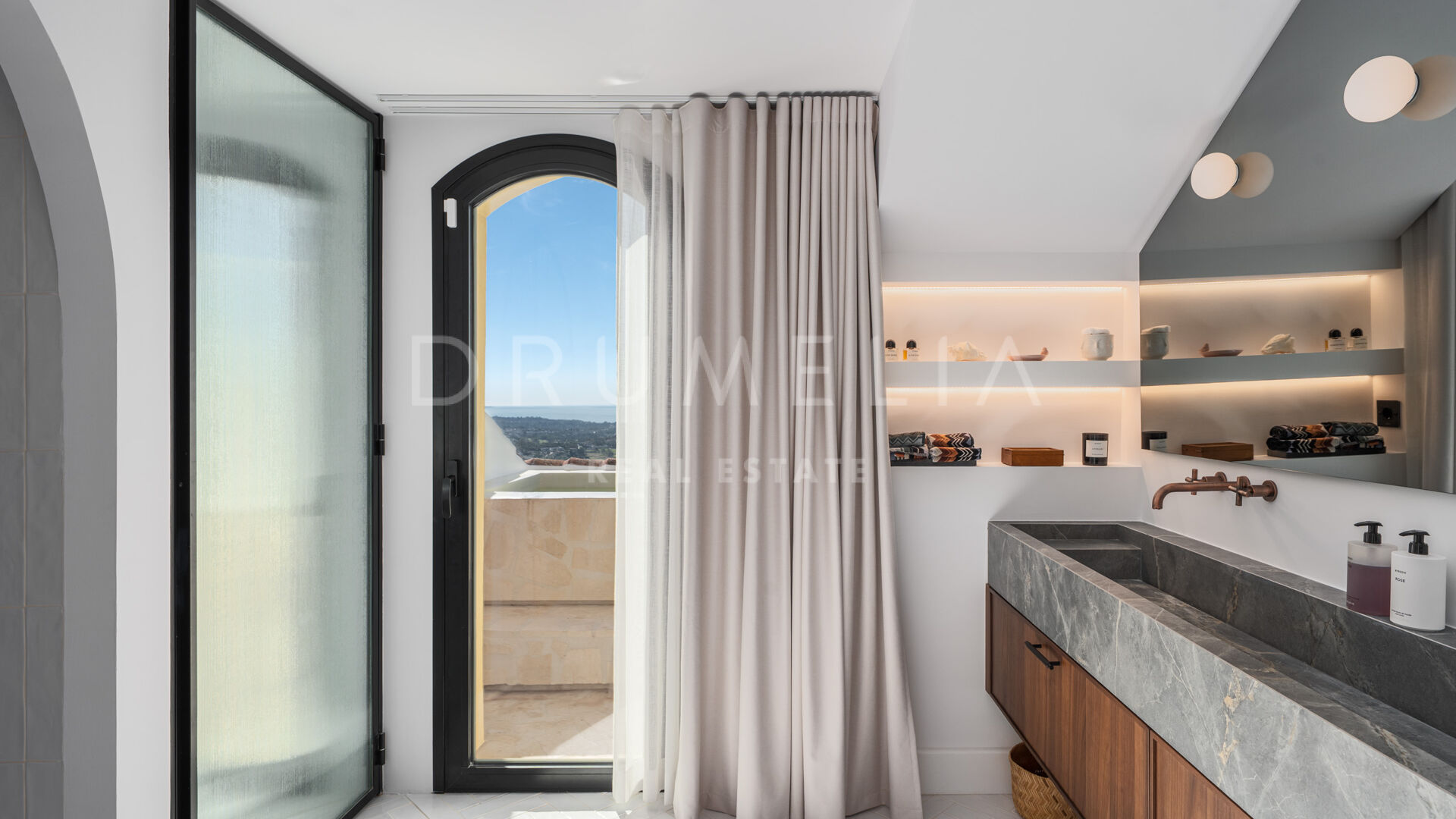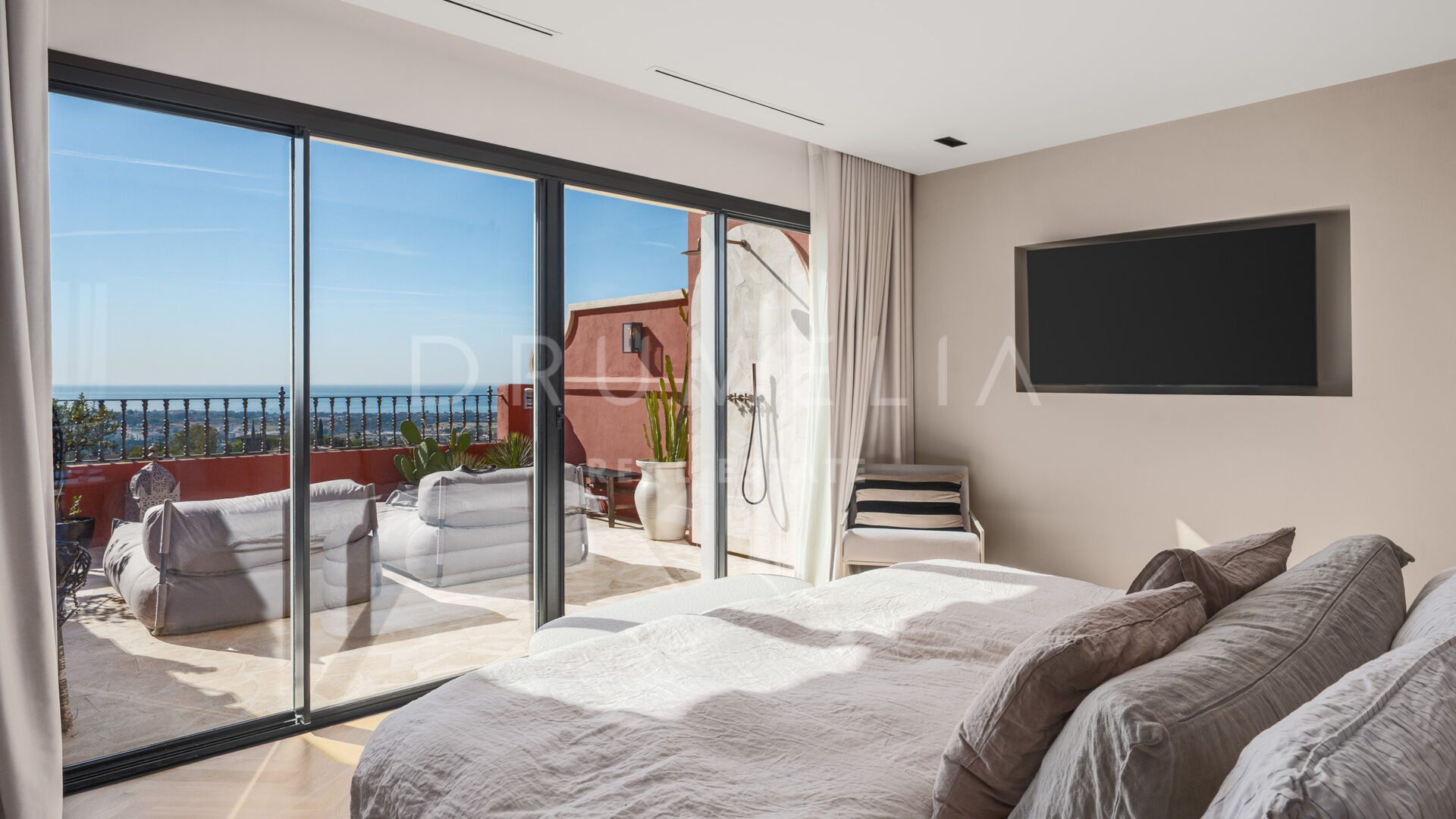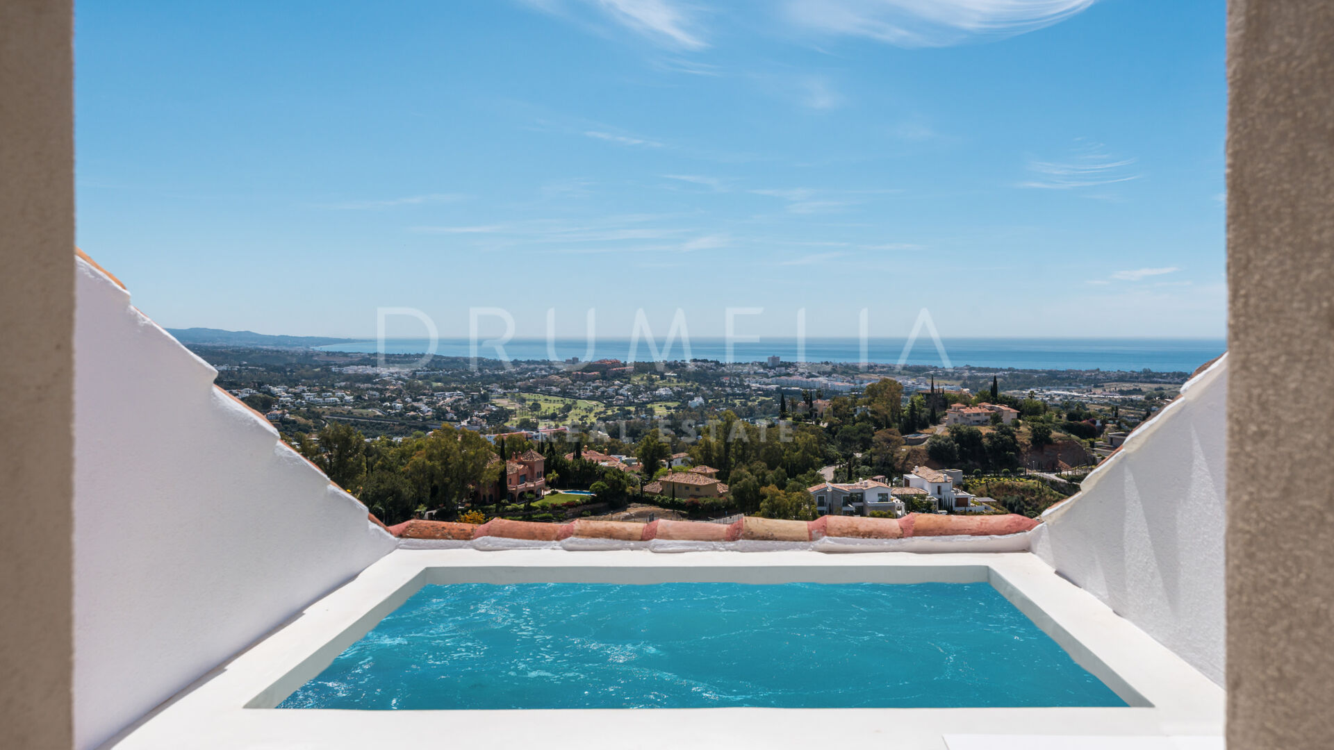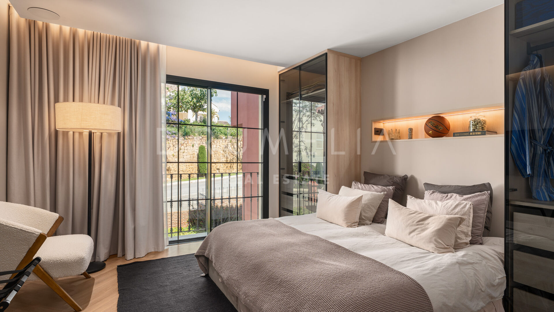 Buiten vind je een terras met Mykonos-steen, een volledige buitenkeuken en een verwarmd dompelbad – perfect voor elk seizoen. Een privé garage en grote berging maken het geheel compleet. Gelegen in een veilige en rustige omgeving nabij restaurants, internationale scholen en golfclubs, met gemakkelijke toegang tot de AP-7, biedt deze woning luxe en comfort in het hart van Benahavís.