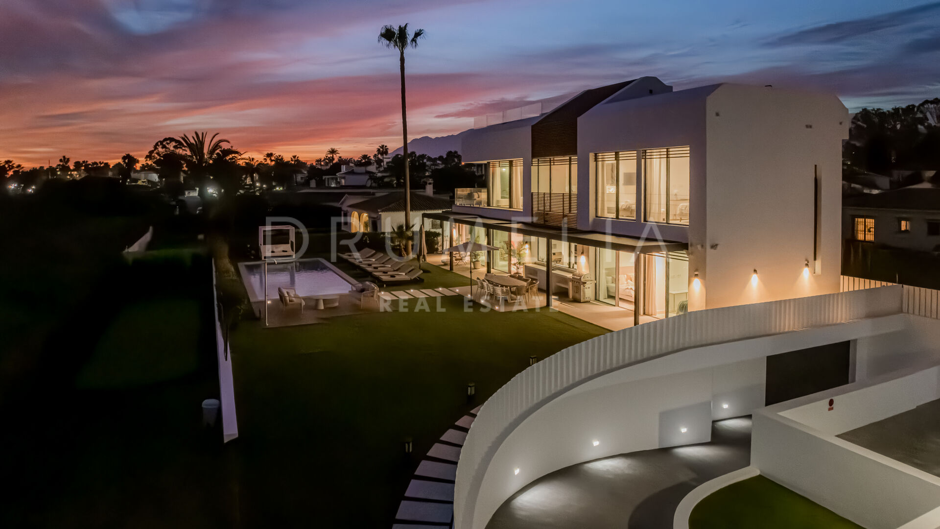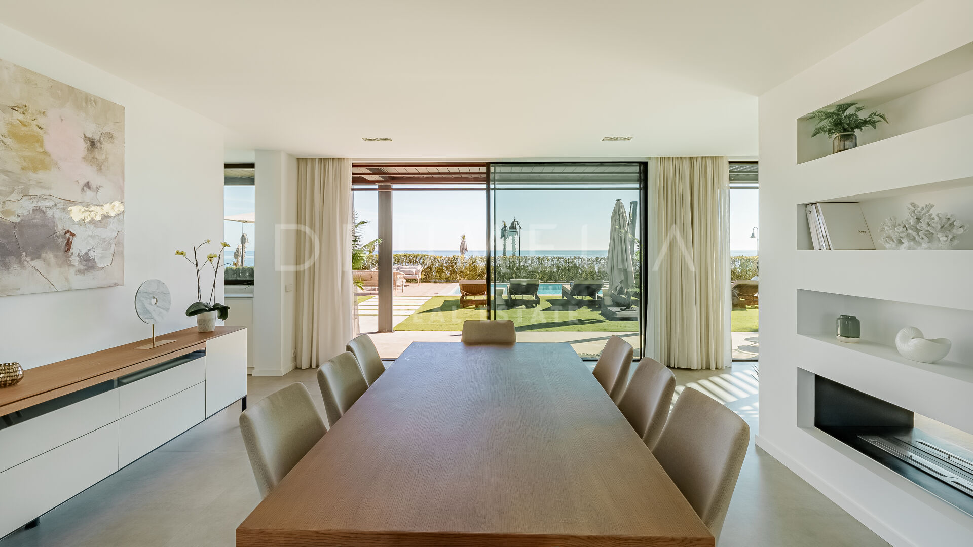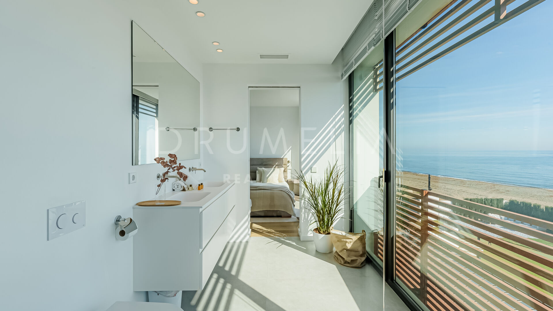 Het state-of-art luxe huis van 699 m² met 314 m² terrassen ligt op een perceel van 1.005 m² en biedt een innovatieve esthetiek, materialen van topkwaliteit en aandacht voor de kleinste designdetails. Gevuld met licht en karakter, is deze eco-vriendelijke luxe accommodatie op het zuiden ontworpen en gebouwd om alle zintuigen aan te spreken. Het biedt een ruime hal die leidt naar een grote open woon- en eetkamer met 2-zijdige bio-open haard en directe toegang tot het grote terras gezegend met ongelooflijk ononderbroken uitzicht op de Middellandse Zee, de Afrikaanse kust, de Rots van Gibraltar en bijbehorende Noord-Afrikaanse piek. Uitzicht om voor te sterven!