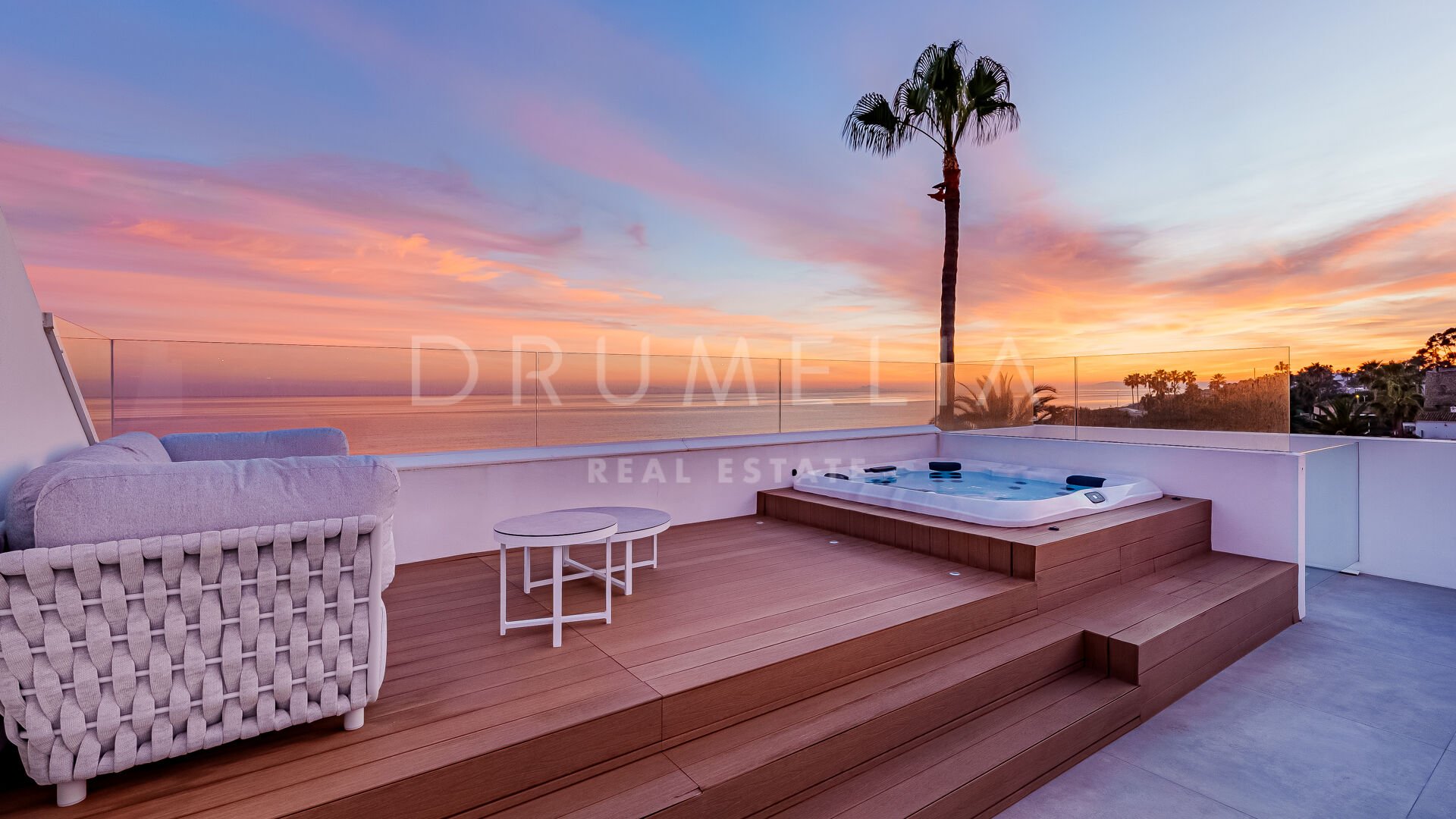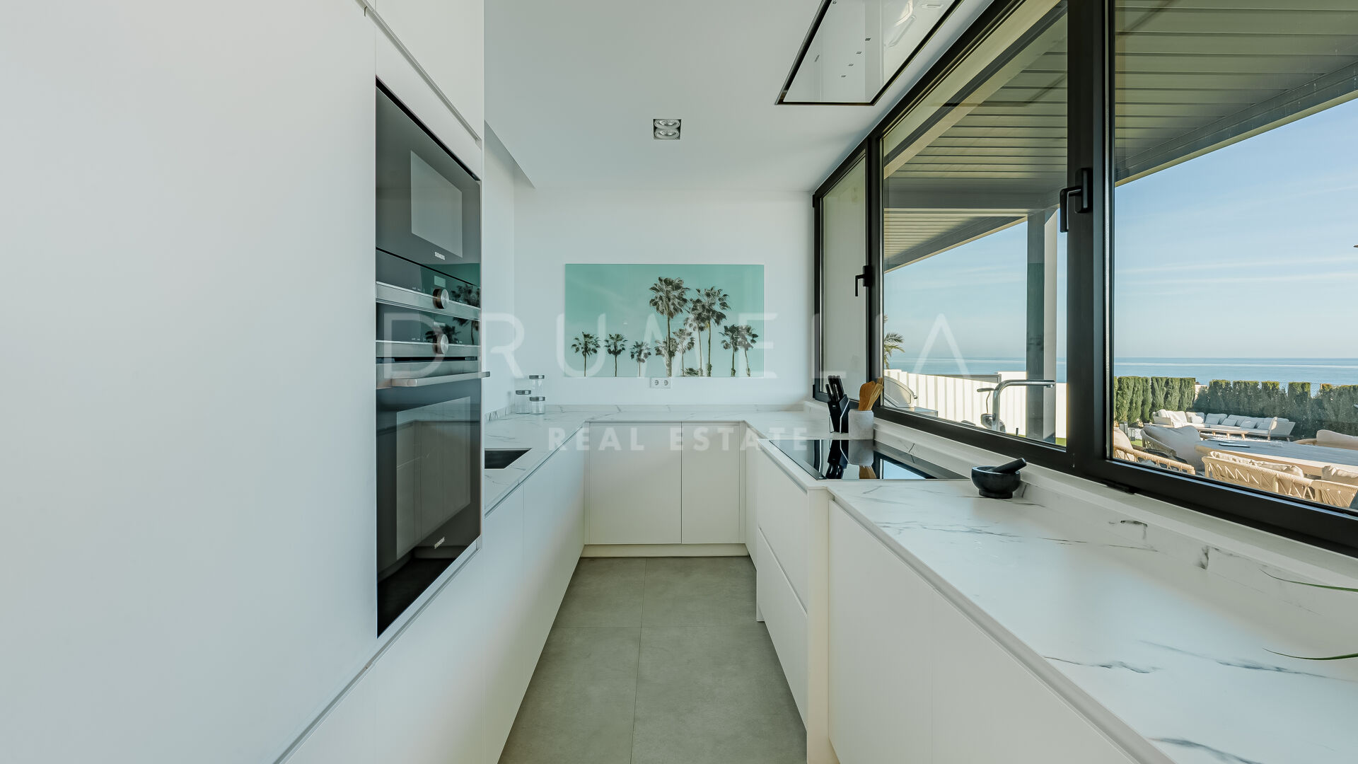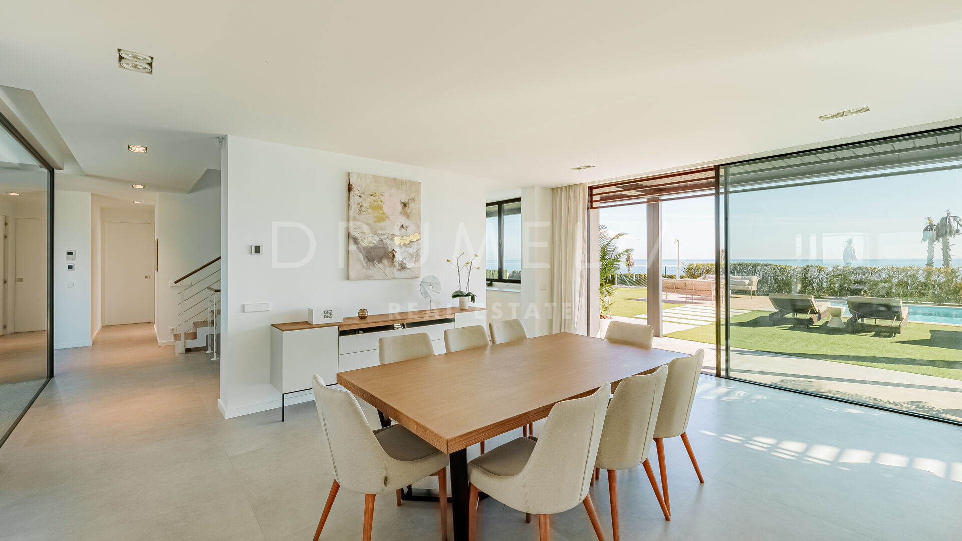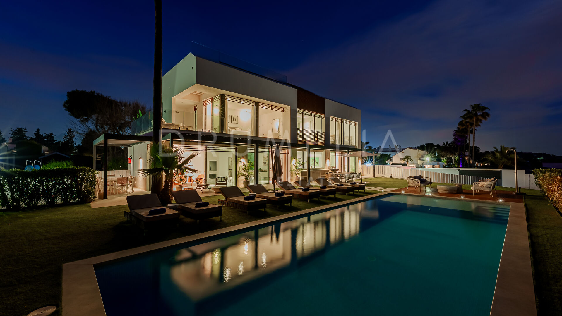 Het state-of-art luxe huis van 699 m² met 314 m² terrassen ligt op een perceel van 1.005 m² en biedt een innovatieve esthetiek, materialen van topkwaliteit en aandacht voor de kleinste designdetails. Gevuld met licht en karakter, is deze eco-vriendelijke luxe accommodatie op het zuiden ontworpen en gebouwd om alle zintuigen aan te spreken. Het biedt een ruime hal die leidt naar een grote open woon- en eetkamer met 2-zijdige bio-open haard en directe toegang tot het grote terras gezegend met ongelooflijk ononderbroken uitzicht op de Middellandse Zee, de Afrikaanse kust, de Rots van Gibraltar en bijbehorende Noord-Afrikaanse piek. Uitzicht om voor te sterven!