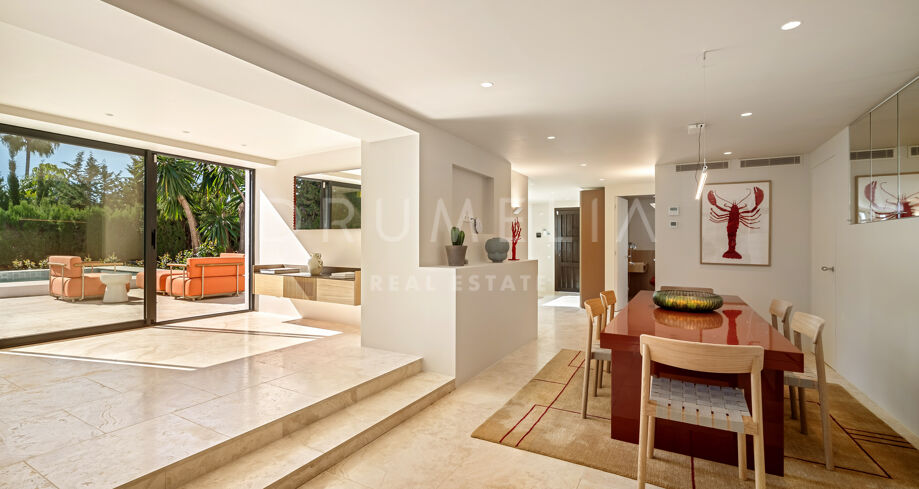 Gelegen in het hart van Nueva Andalucía combineert deze prachtige mediterrane woning moeiteloos moderne elegantie met natuurlijke schoonheid. Omgeven door een zorgvuldig aangelegde tuin die het hele perceel omarmt, biedt het een gevoel van rust en privacy. Volgroeide bomen en weelderig groen versterken de sfeer, terwijl het privézwembad een serene toevluchtsoord vormt. Met royale ruimtes die perfect zijn voor entertainment, is dit huis ideaal voor wie verfijnde luxe waardeert en zich verbonden voelt met de natuur.