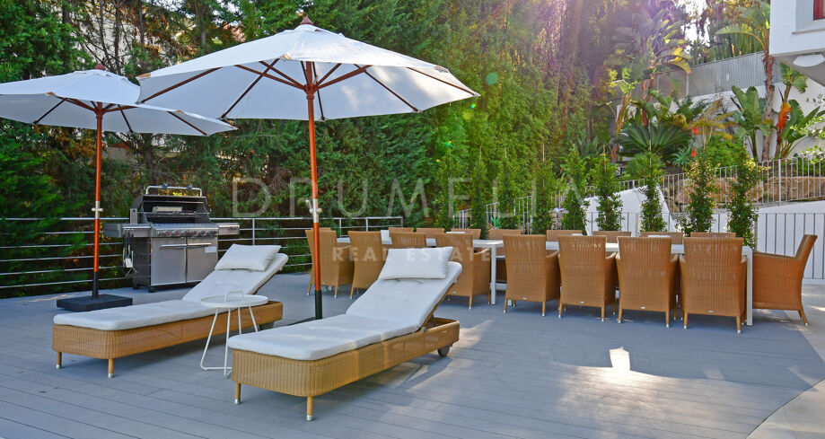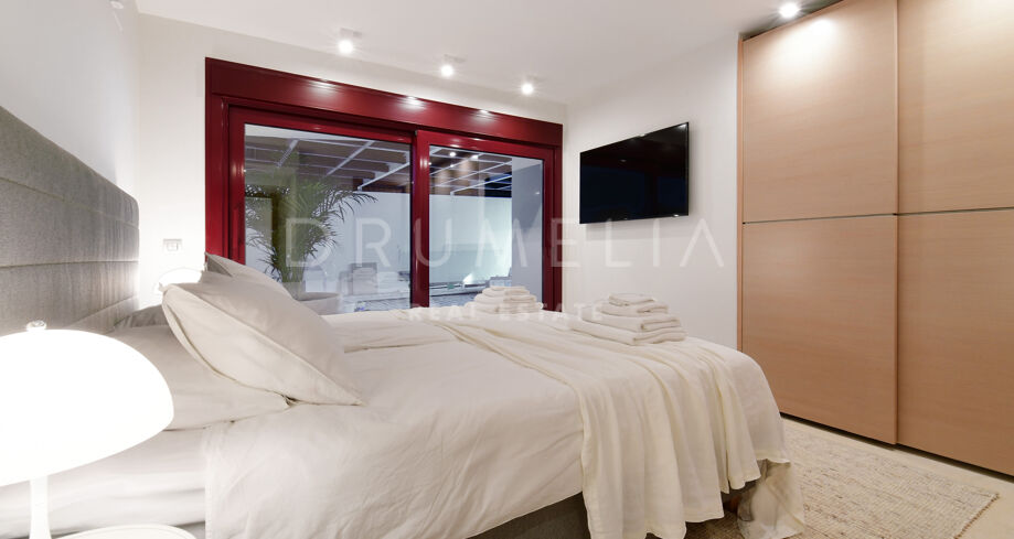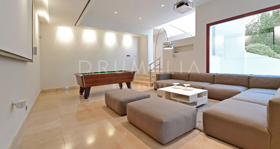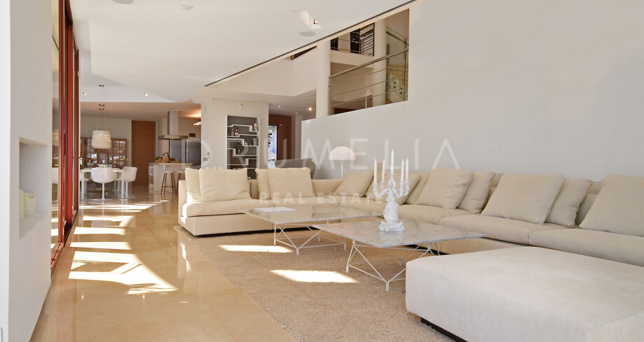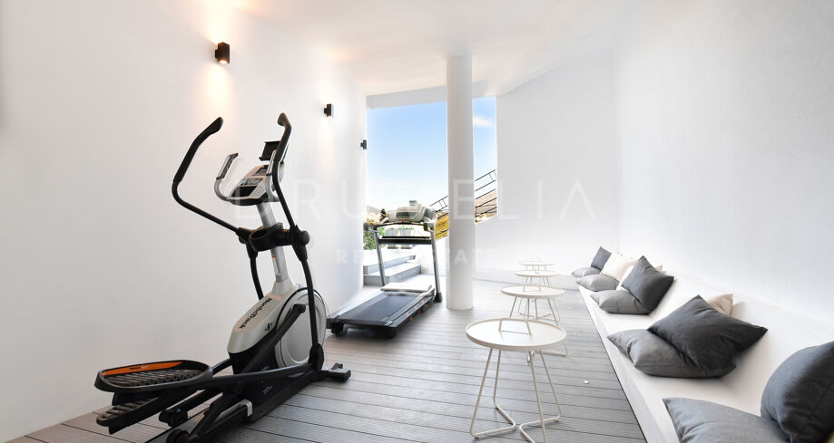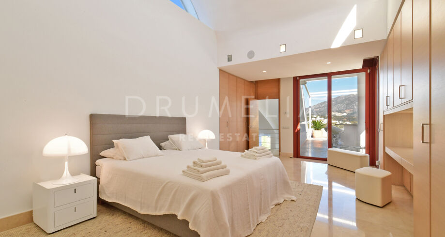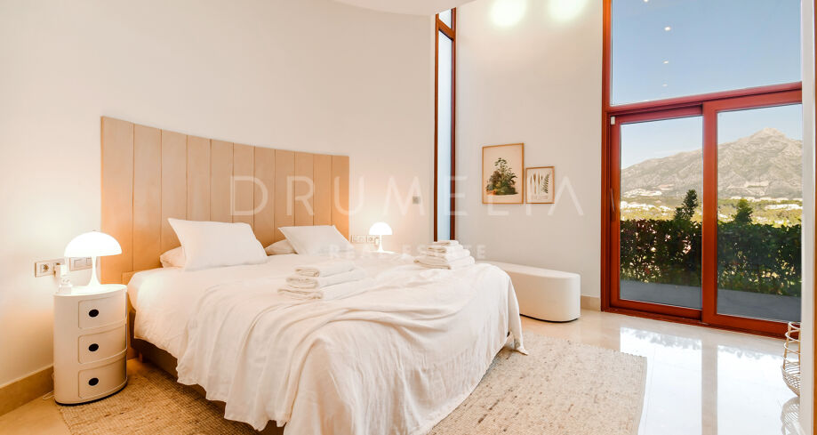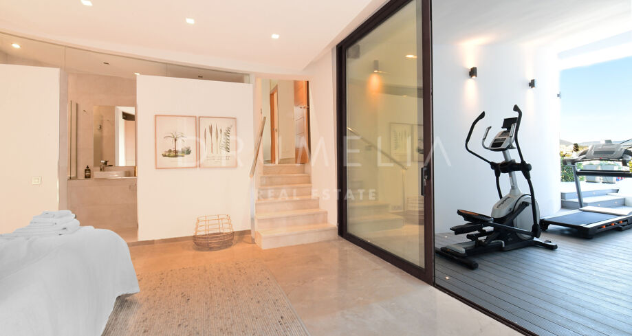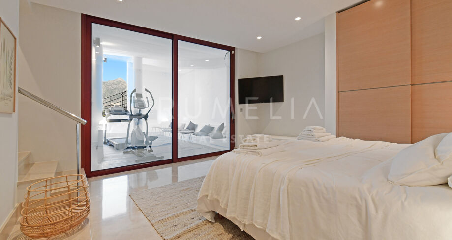 De pas gerenoveerde villa is verdeeld over 3 verdiepingen, waarbij zorgvuldig is nagedacht over de verdeling om het licht en het prachtige uitzicht over de Middellandse Zee, de berg La Concha en de golfbaan Las Brisas te maximaliseren.