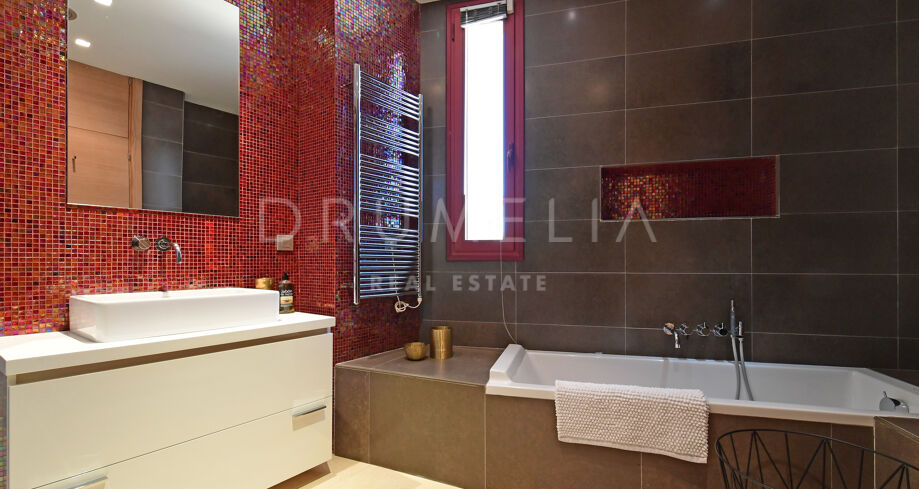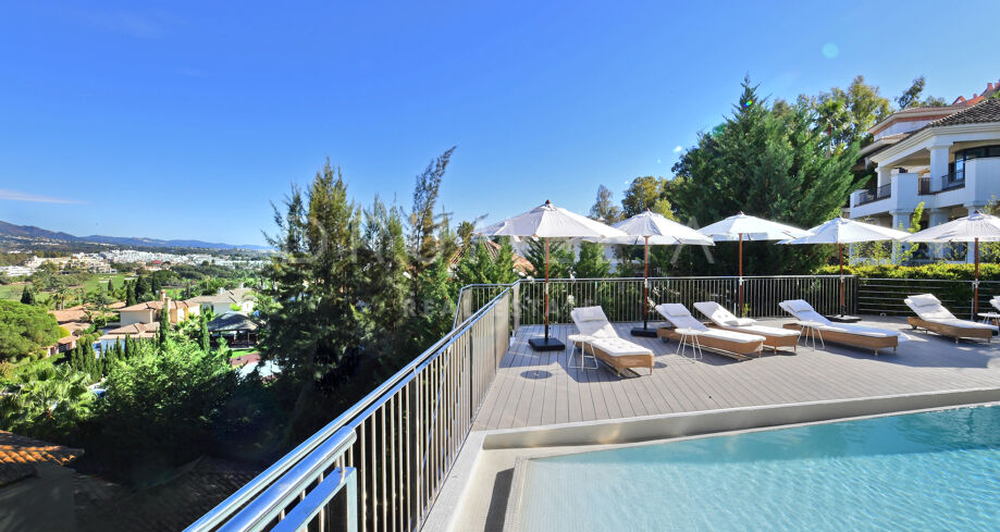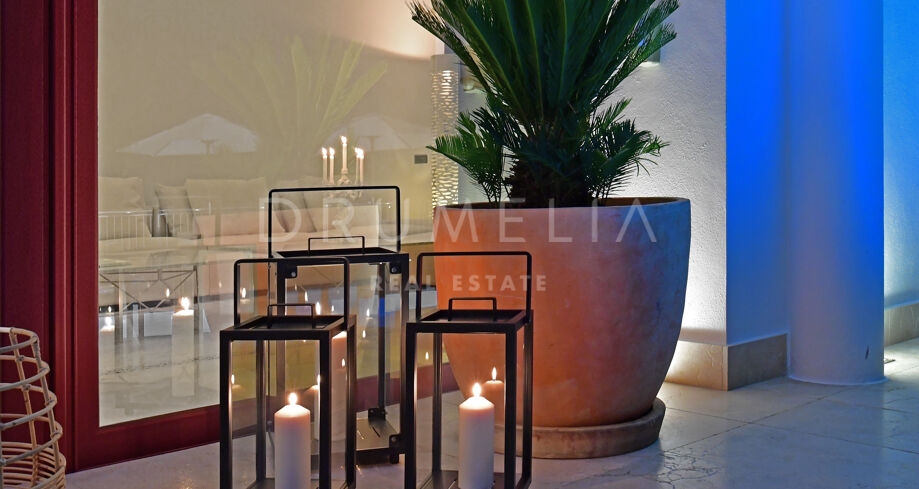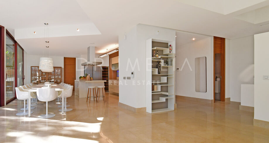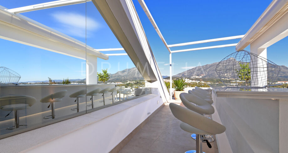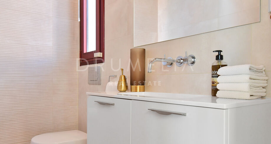 Deze werkelijk schitterende luxe woning is gelegen in een rustige en groene woonwijk die een mix is van traditionele Andalusische flair met een kosmopolitische sfeer, op slechts enkele minuten rijden van het bruisende Puerto Banús en het trendy Marbella, evenals de stranden, het casino, winkels, internationale scholen en recreatiegebieden. Nueva Andalucía is ook bekend voor zijn golfclubs en internationale keuken die varieert van vriendelijke, funky down-home Amerikaanse deli sfeer, sport bars, Italiaanse verborgen juweeltjes en exotische etnische tot de ultieme Cordon Bleu en exquise Haute cuisine.