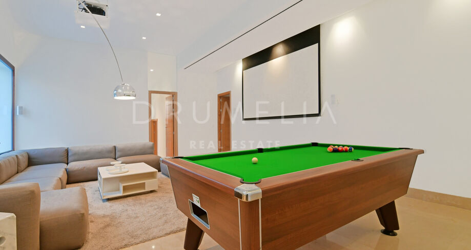 Het biedt het beste van luxe wonen, het bestaat uit een open woonkamer met een royale lounge en toegang tot de terrassen, een state of the art-keuken met kasten van de premium keuken fabrikant Poggenpohl en Gaggenau apparatuur, die zich presenteert met een eethoek geschikt voor 16 personen en heeft een directe toegang tot de tweede keuken en wasruimte; 7 slaapkamers (6 en-suite) ruim uit elkaar geplaatst voor totale privacy – 2 master slaapkamers op de tweede verdieping met toegang tot de bar en lounge, 5 slaapkamers op de begane grond allen met toegang tot terras en zwembad; een bioscoop/game kamer met PlayStation en een pooltafel, een bar met Teppanyaki Grill tafel; opslagruimten, gastentoilet, garage, etc.