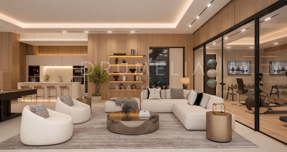 De bouw en de voorzieningen zijn hypermodern en omvatten alle luxe, waaronder een fitnessruimte, SPA-centrum met een stoombad, sauna en binnenzwembad, bar en speelkamer, dubbele buitenzwembaden met nul-rand, en een garage voor meerdere voertuigen. Als u deze prachtige villa koopt, kunt u optimaal profiteren van de wereldberoemde geraffineerde levensstijl van Marbella. De moderne design esthetiek omvat minimalistische functionaliteit en experimenten met vorm (bijvoorbeeld een prachtige ergonomische bank, hangende verlichting, fauteuils in een Master Suite, enz.) De woning is van alle gemakken voorzien en heeft veel luxe voorzieningen (airconditioning, geraffineerd plafondontwerp, LED-verlichting, dubbele beglazing, inbouwkasten, enz.) Het interieurontwerp wordt gekenmerkt door een monochroom kleurenpalet, strakke lijnen, natuurlijke materialen, veel glas en veel daglicht. Deze exclusieve woning is ideaal voor diegenen die de voorkeur geven aan indrukwekkende designelementen in combinatie met 21e-eeuws comfort en stijl.