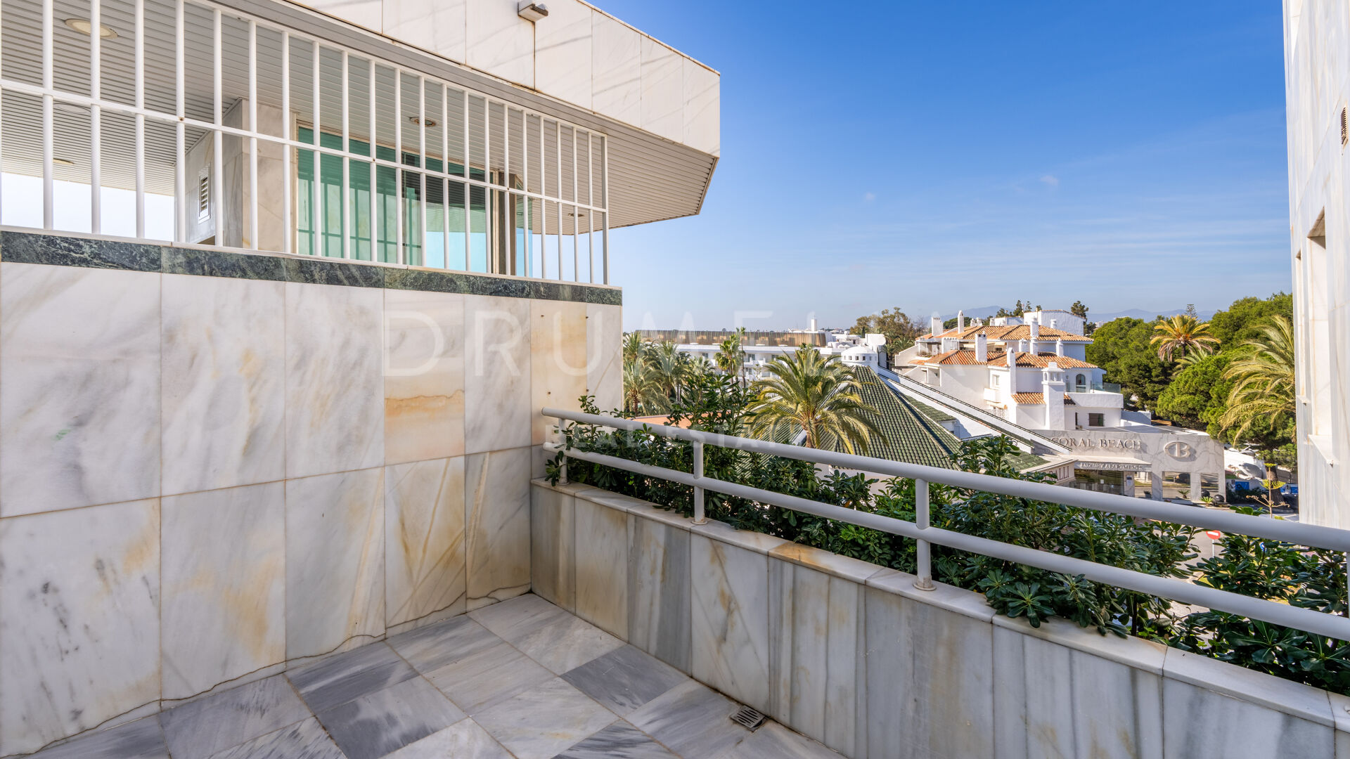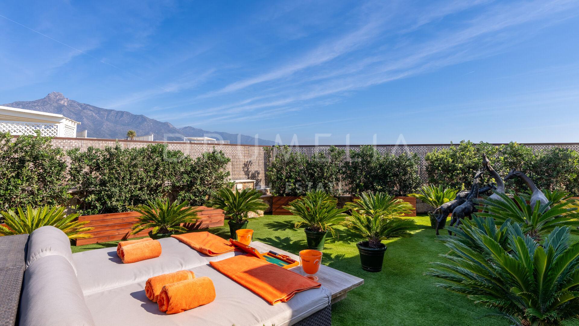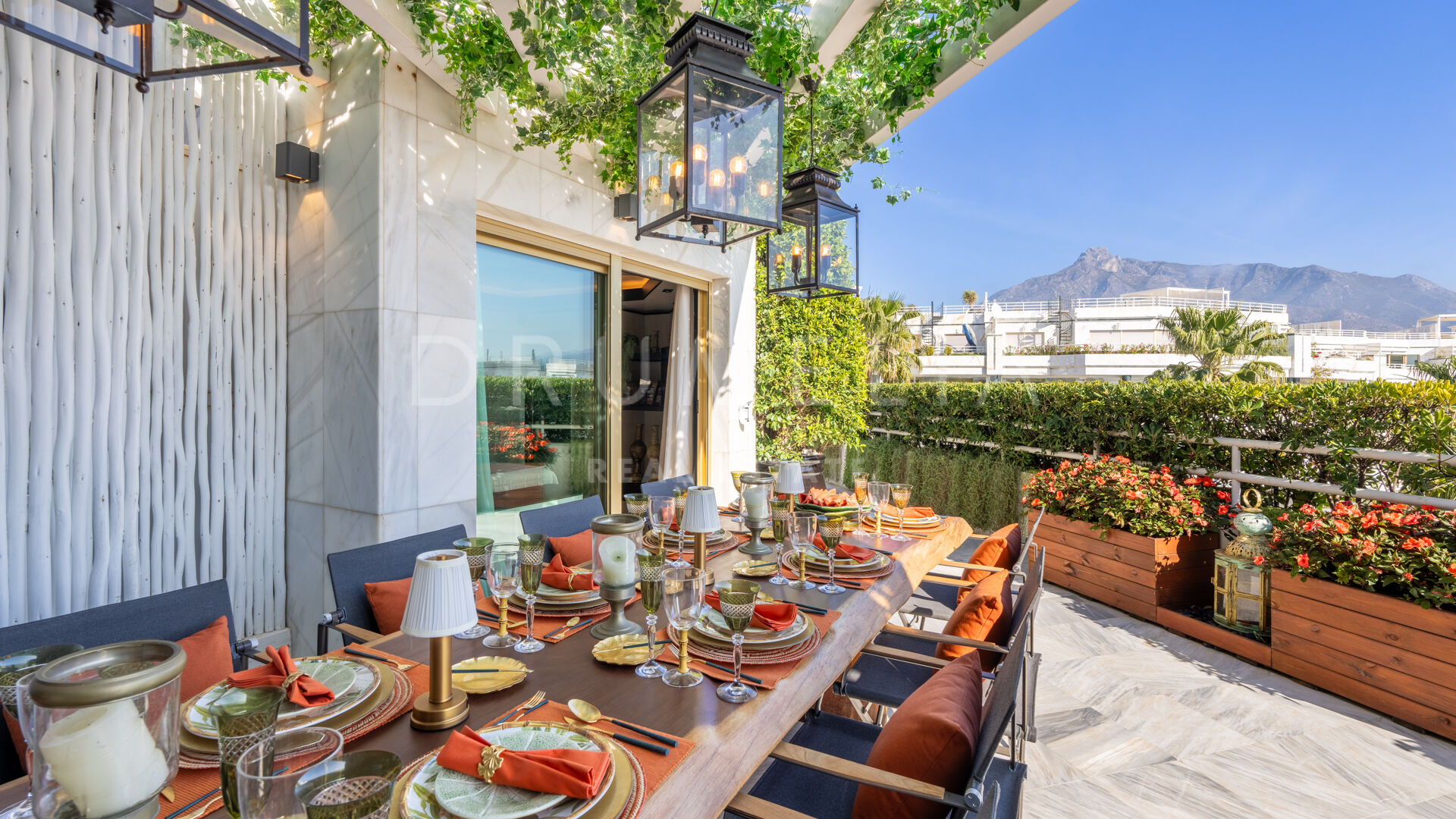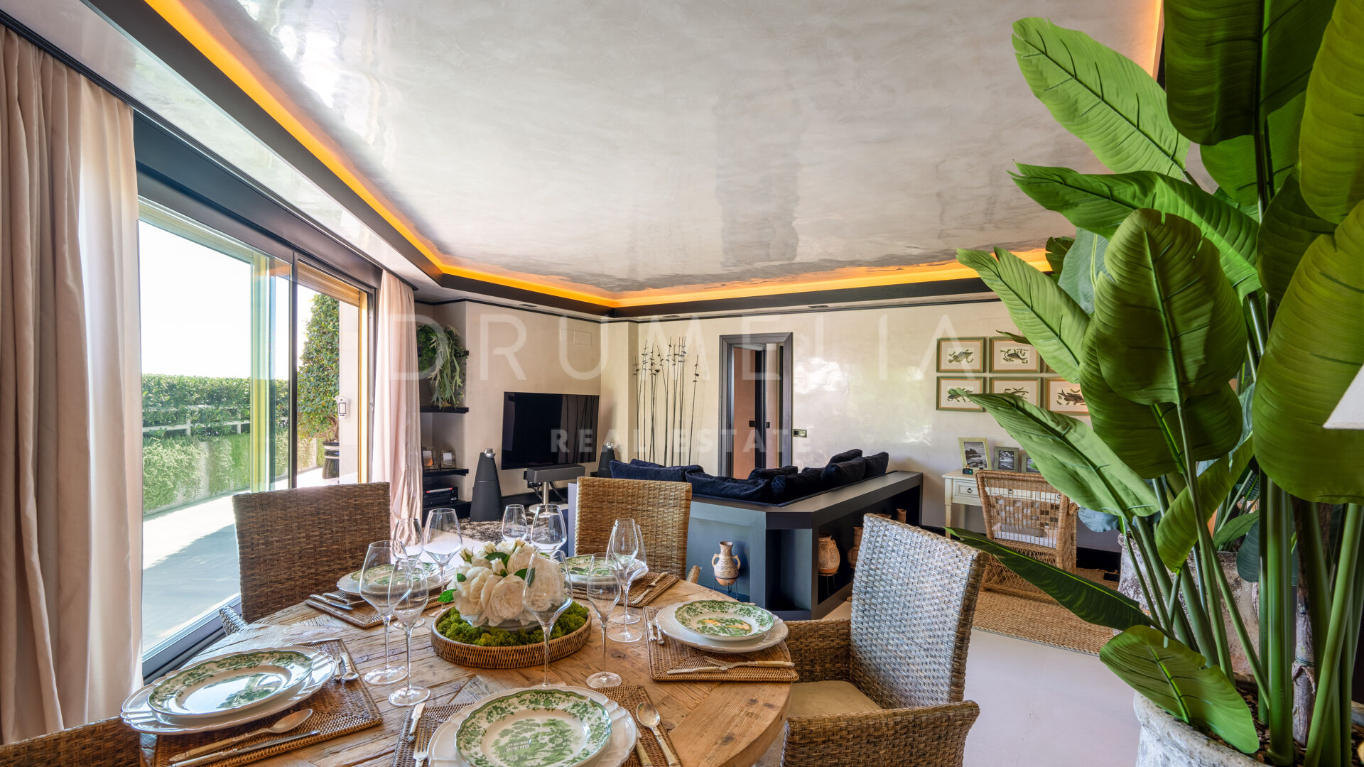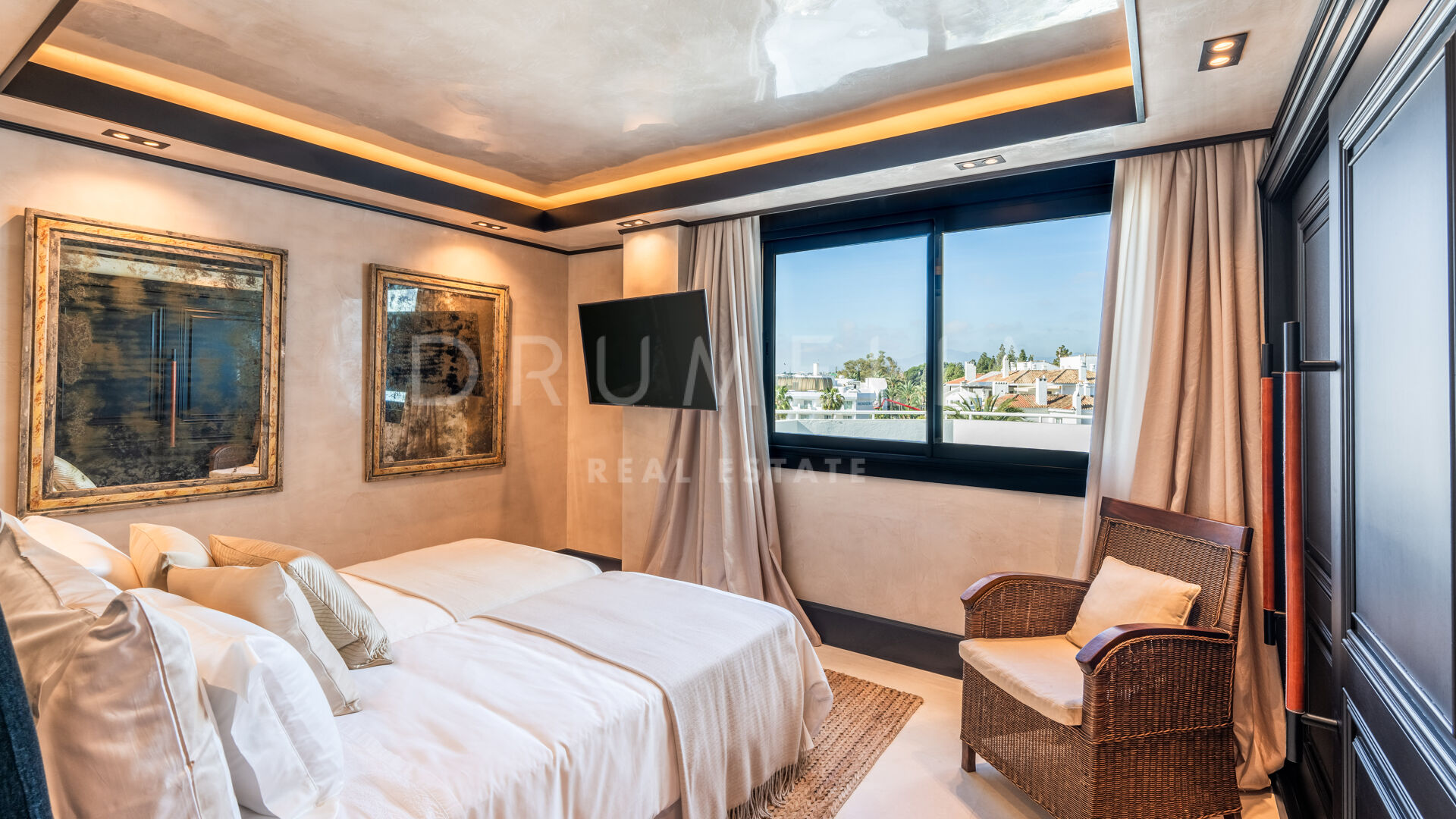 Situado a un corto paseo del glamuroso Puerto Banús, de restaurantes de alta cocina y de servicios esenciales como un supermercado, este ático ofrece la combinación perfecta de comodidad y lujo. Se accede a la propiedad a través de un ascensor privado que se abre directamente en la residencia, haciendo hincapié en su exclusividad.