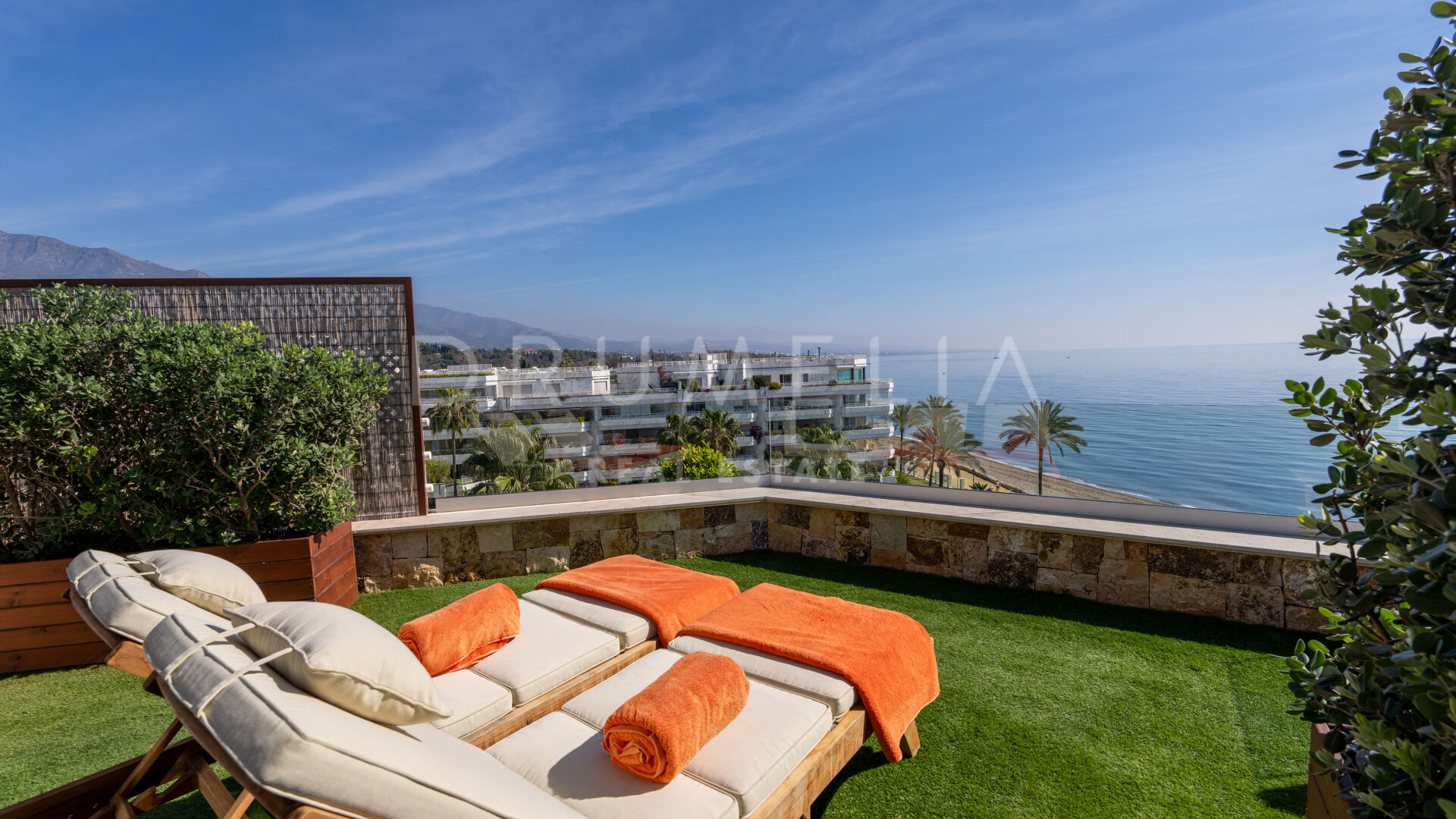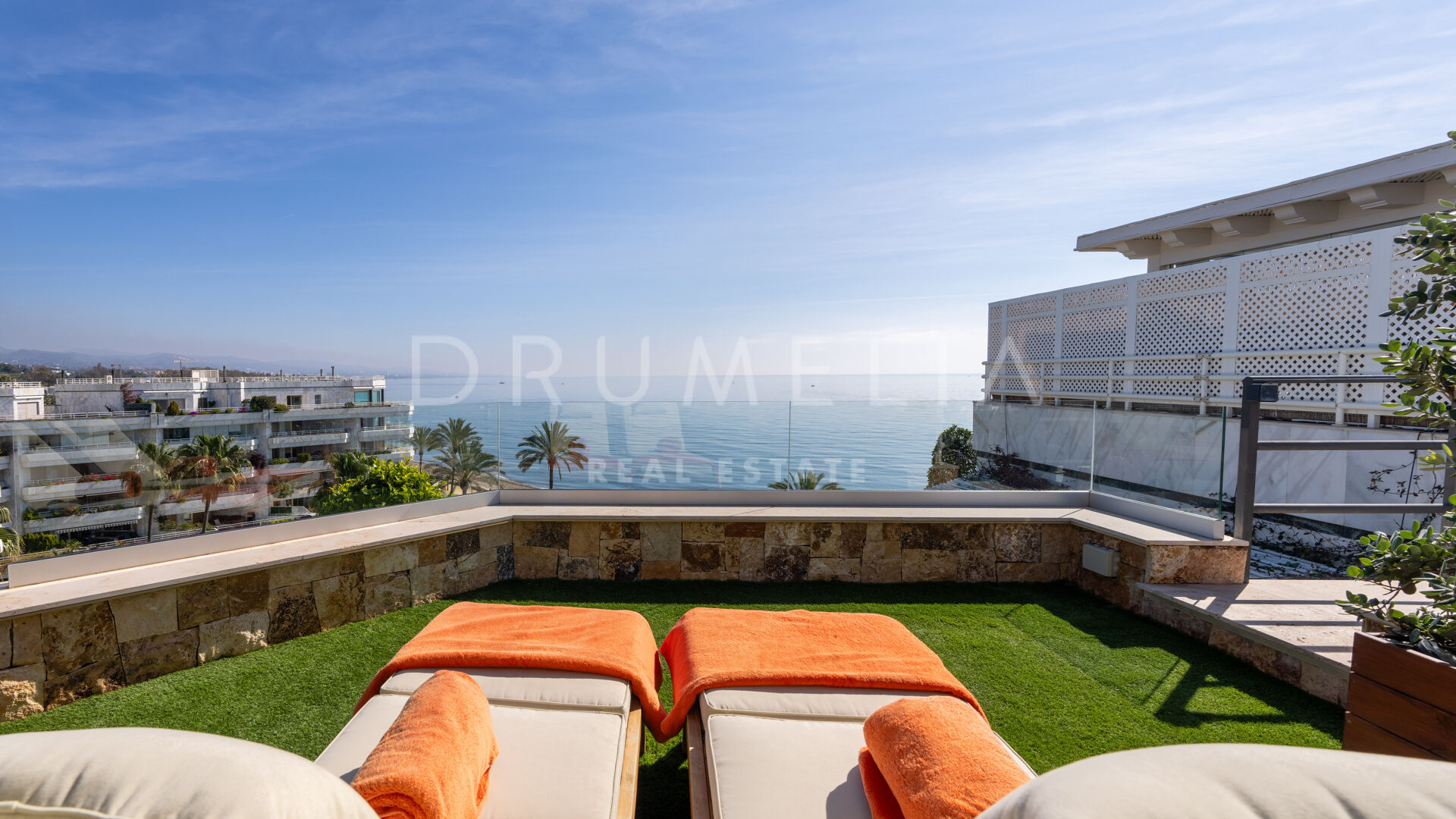 Las comodidades adicionales incluyen la proximidad a prestigiosos campos de golf, tiendas y el puerto, haciendo de este ático una oportunidad única para aquellos que buscan lujo frente al mar combinado con comodidad y exclusividad.