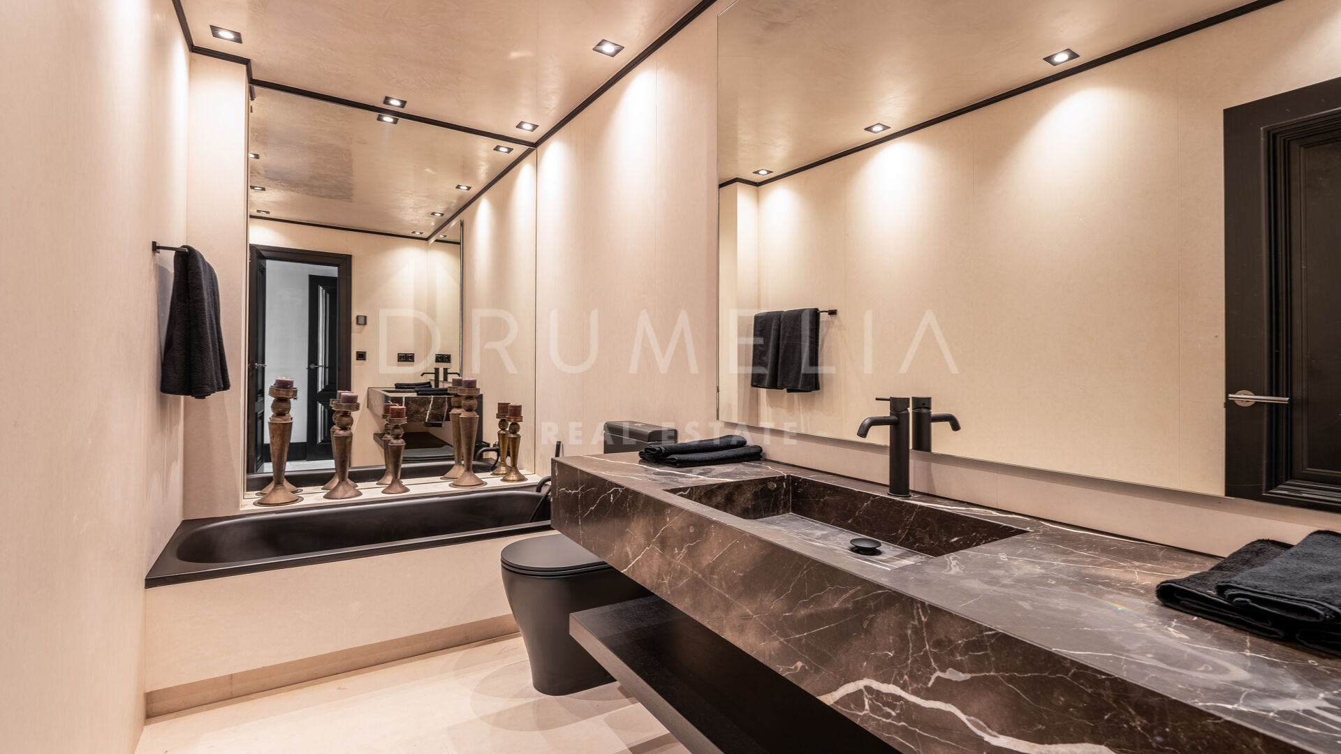 Recientemente renovada con materiales de alta calidad, esta lujosa propiedad cuenta con suelos de mármol, paredes de estuco y está equipada con sistemas de domótica y música de última generación, lo que garantiza una experiencia de vida inigualable.