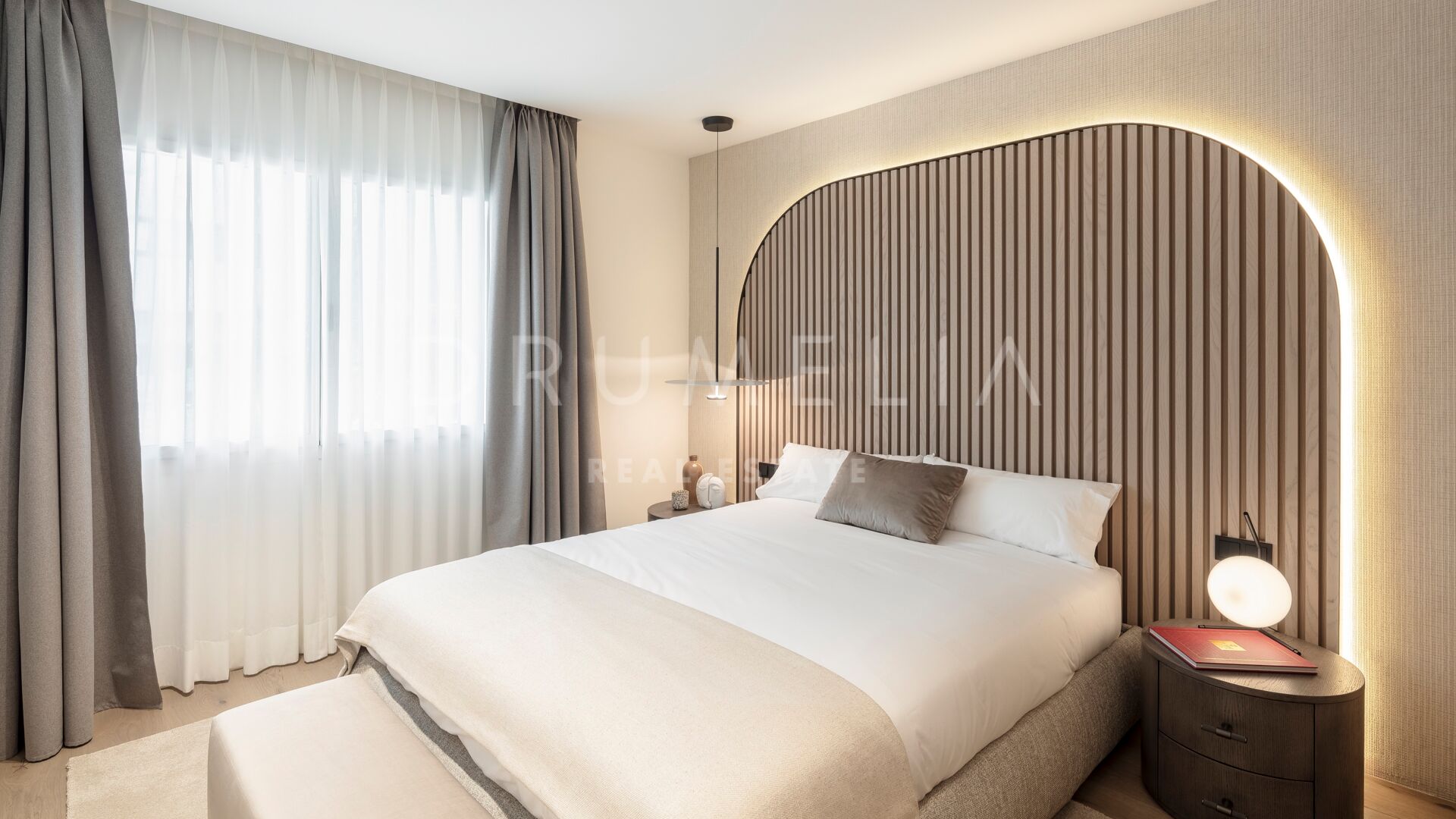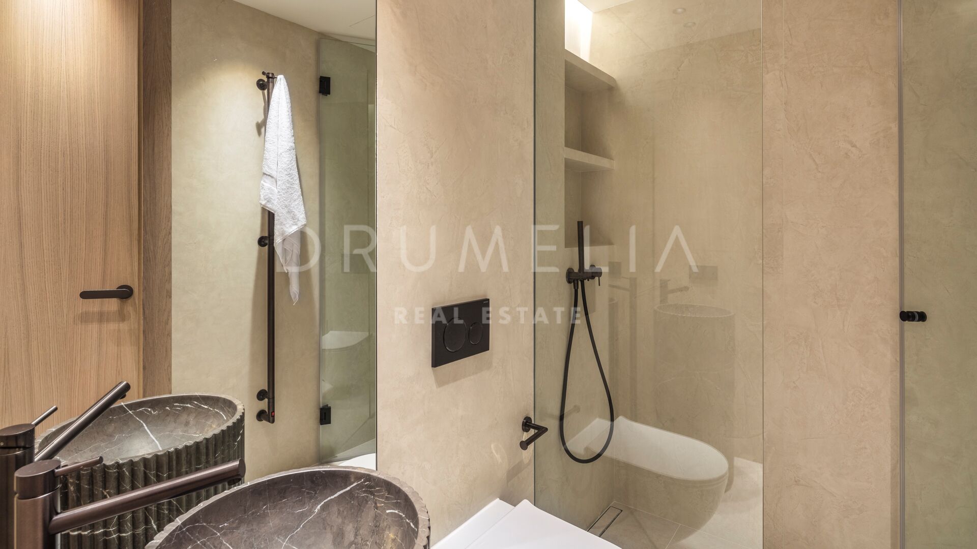 Het prachtige appartement wordt te koop aangeboden in een uitstekende staat en prachtig vormgegeven. De ontwerpers hebben veel aandacht besteed aan details bij het creëren van de leefruimtes. De materialen en afwerkingen zijn van de hoogste kwaliteit, met grootformaat tegels van Porcelanosa en Ascale voor de woonruimtes. Vloer-tot-plafond aluminium ramen van het merk Cortizo zorgen voor directe toegang tot het terras en overspoelen het pand met natuurlijk licht. De geraffineerde plafonds en LED-verlichting in het hele pand voegen een speciaal eigentijds gevoel toe. Een privéparkeerplaats en een berging zorgen voor zowel veiligheid als praktische bruikbaarheid.