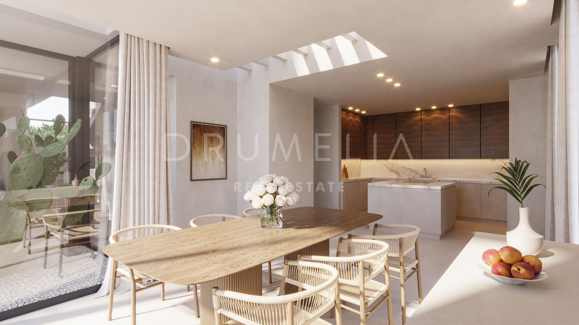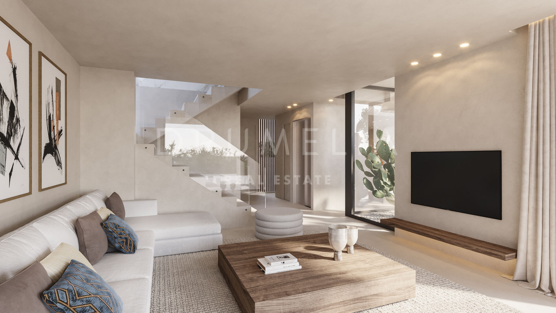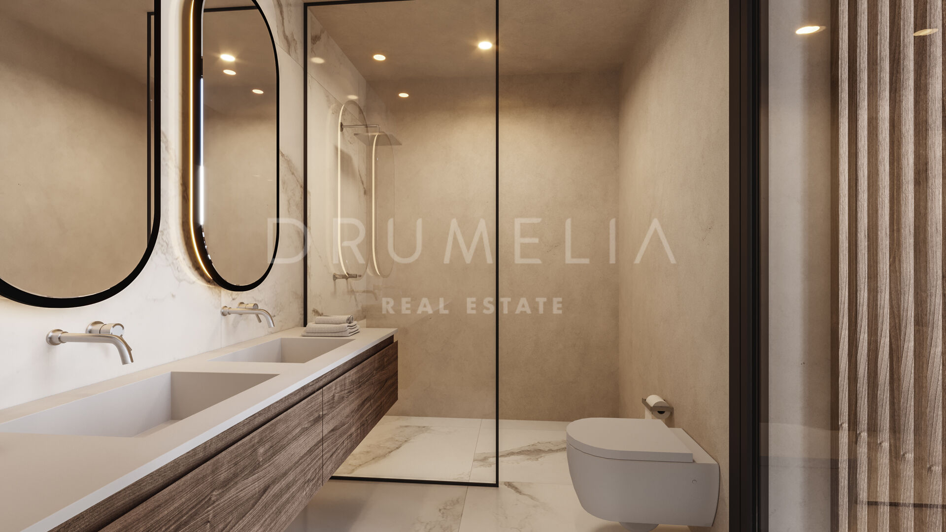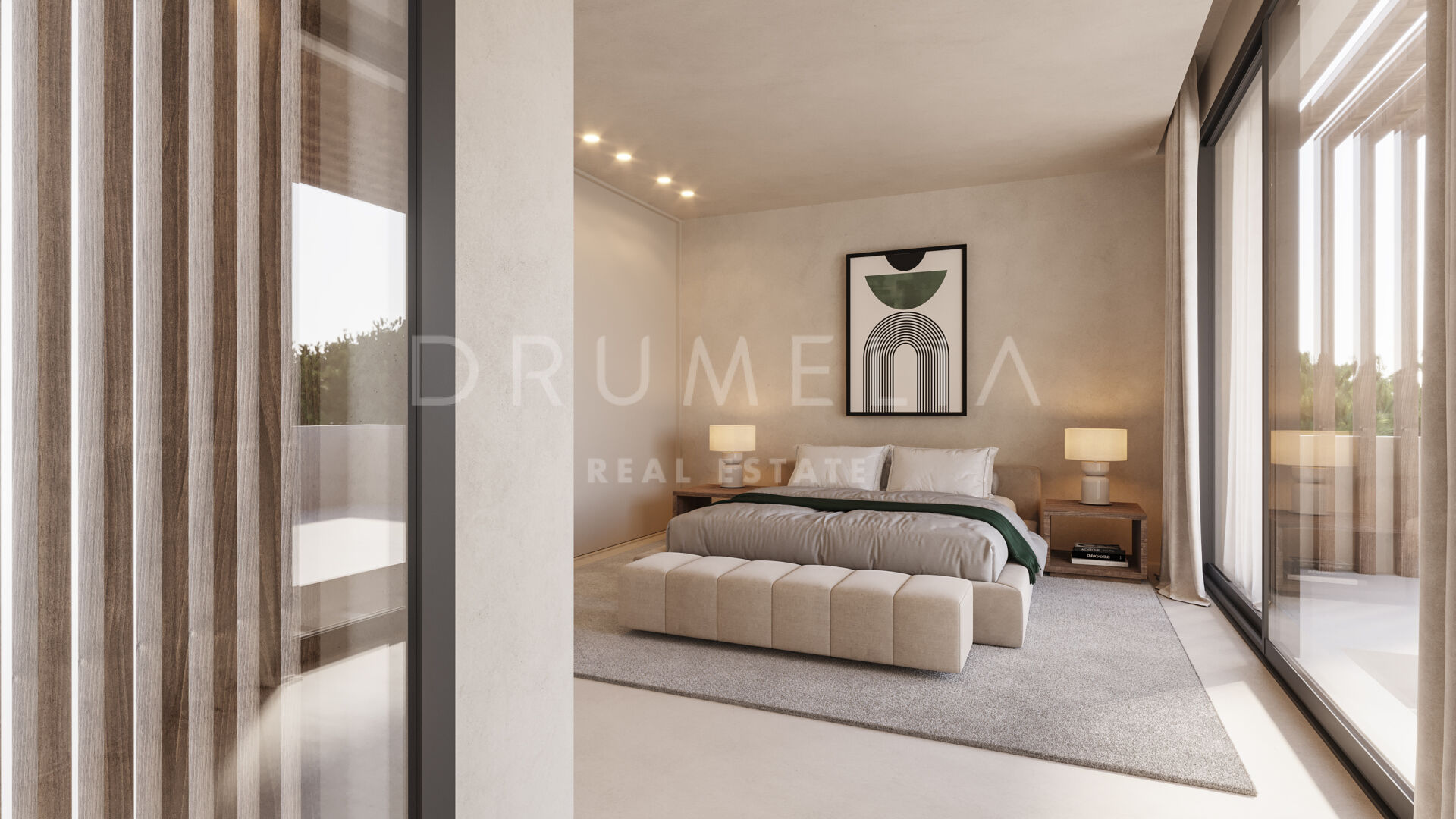 Het ontwerp combineert de mediterrane levensstijl met modern comfort dankzij open interieurs met kamerhoge ramen die naadloos aansluiten op de terrassen en het privézwembad. Het solarium biedt panoramisch uitzicht, terwijl de kelder een veelzijdige ruimte biedt die kan worden ingericht als bioscoop, fitnessruimte of ontspanningsruimte. De keuken is volledig uitgerust met hoogwaardige apparatuur en wordt aangevuld met een gastenslaapkamer en gastentoilet. Comfort het hele jaar door is gegarandeerd dankzij een open haard, airconditioning en vloerverwarming. Er is tevens een wasruimte en een dienstkamer voorzien, naast een toegankelijk ontwerp voor rolstoelen.