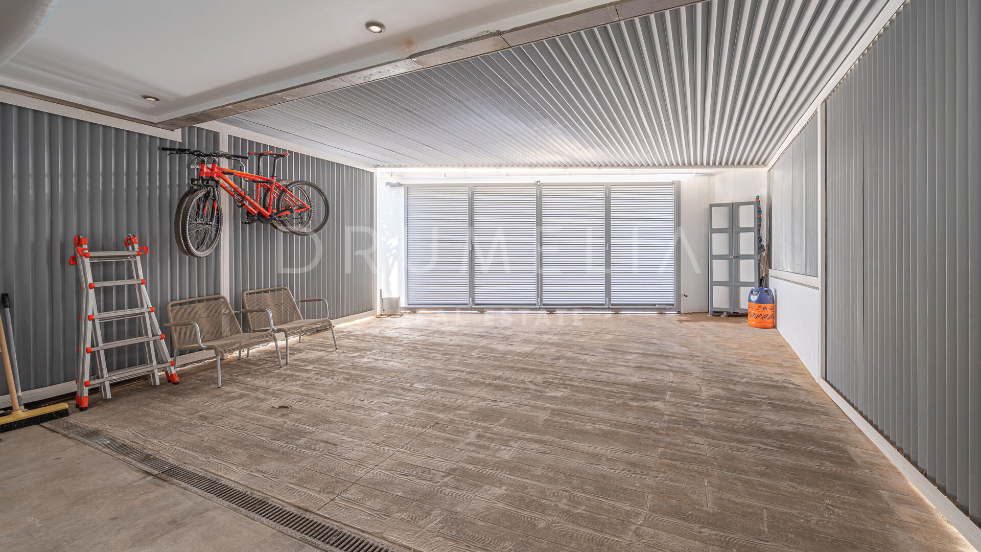 De chique wenteltrap brengt je naar de bovenverdieping, waar een kantoorruimte is, een gastensuite met eigen badkamer, een grote master suite badkamer en een privé patio op het zuiden. Nog twee grote slaapkamers, een gastenbadkamer en veel bergruimte bevinden zich allemaal op de onderste verdieping. Deze opmerkelijke gezinswoning heeft een solarium op het dak met prachtig uitzicht op de Middellandse Zee. Een privé garage biedt plaats aan 2 van je auto’s.