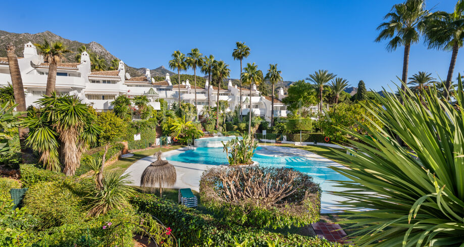 De woning ligt in een veilige en gevestigde buurt aan de voet van de Sierra Blanca-berg. Bewoners genieten van aangelegde gemeenschappelijke tuinen en een architectonisch ontworpen zwembad, terwijl de voorzieningen van de Golden Mile van Marbella eenvoudig bereikbaar zijn.