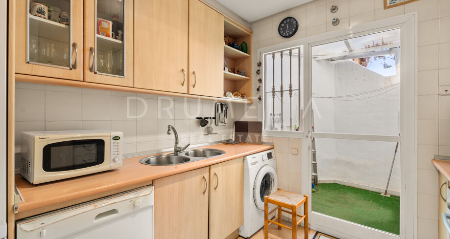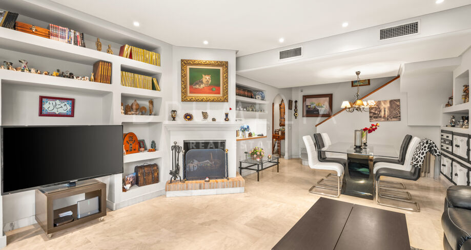 Deze lichte townhouse in Camojan Blanco biedt 169 m² bebouwde oppervlakte op een privéperceel van 210 m² in een rustige woonomgeving in Sierra Blanca. De begane grond beschikt over een open woon- en eetruimte met veel natuurlijk licht, een aparte keuken en een complete badkamer. Een veelzijdige kamer op dit niveau kan voor verschillende doeleinden worden gebruikt en sluit praktisch aan op de tuin.