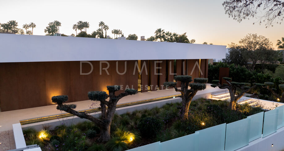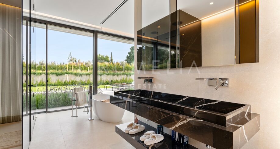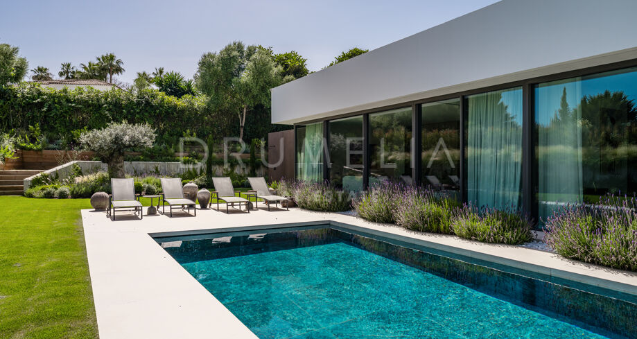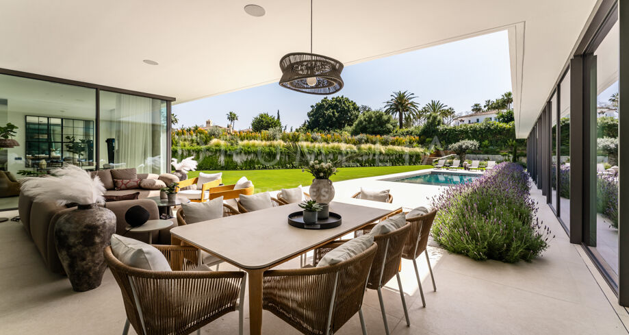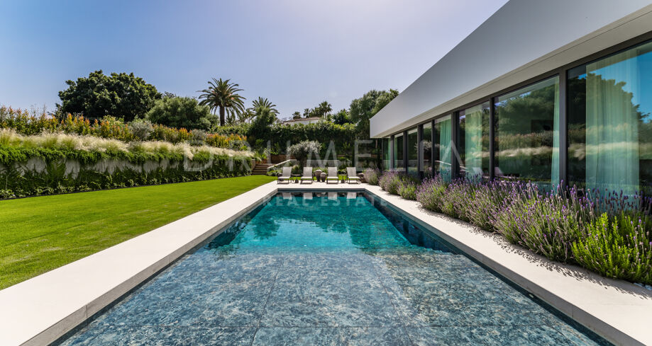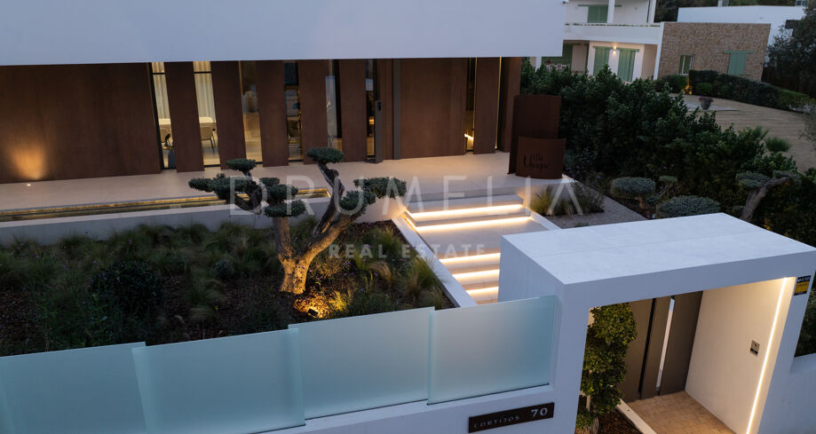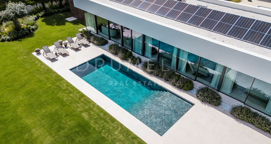 Als je naar buiten stapt, komt de villa echt tot leven met zijn prachtige buitenruimtes. De verzorgde tuinen, versierd met weelderig groen en mediterrane landschapsarchitectuur, bieden een rustige oase van privacy en sereniteit. Het uitnodigende zwembad, omringd door stijlvolle ligstoelen en schaduwrijke loungeplekken, is perfect om te ontspannen onder de warme Andalusische zon. Of je nu geniet van een kopje koffie in de ochtend op het terras, een diner bij zonsondergang bij het zwembad organiseert of tot rust komt in de rustige tuin, dit huis biedt een ongeëvenaarde levensstijl van luxe en ontspanning.