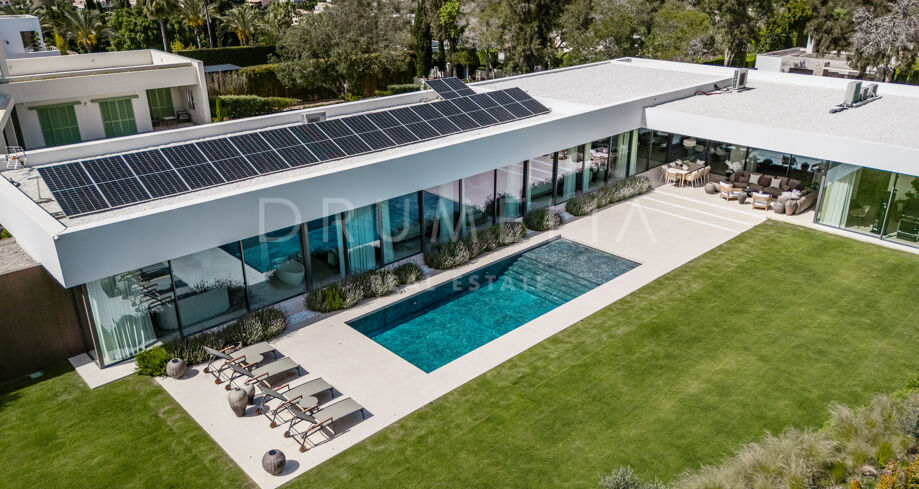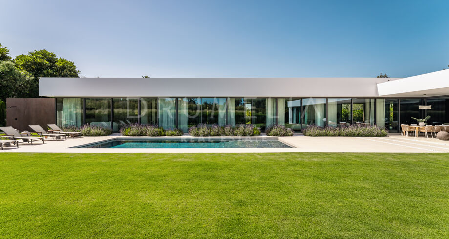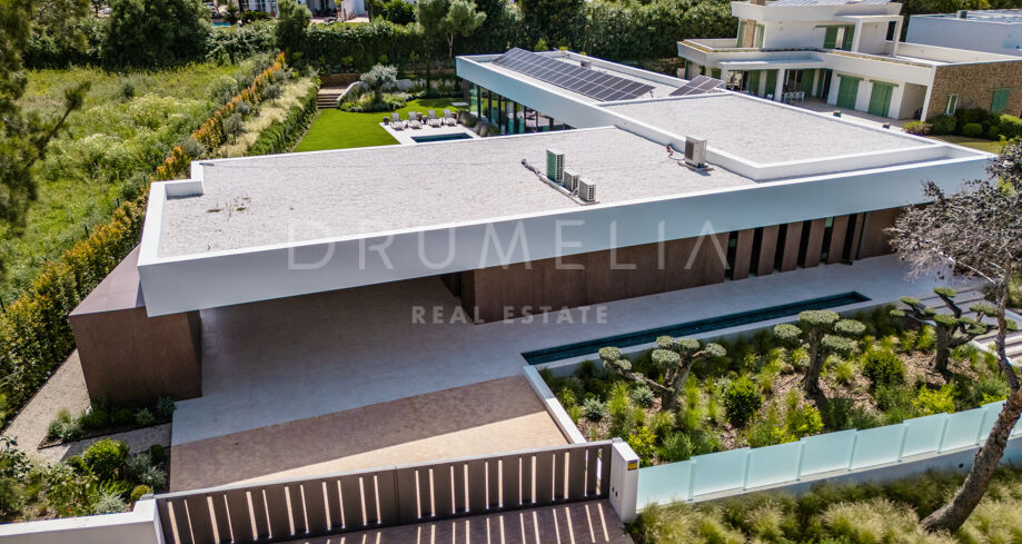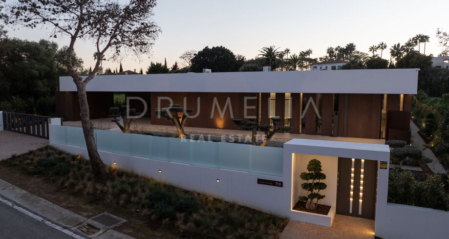 Genesteld in het hart van Sotogrande Alto, deze uitzonderlijke moderne villa is een waar architectonisch juweeltje en biedt een naadloze mix van elegantie, comfort en eigentijds design. De gelijkvloerse indeling van de villa, de uitgebreide glazen wanden en de open leefruimtes creëren een harmonieuze verbinding met de natuurlijke omgeving, waardoor er een overvloed aan natuurlijk licht binnenvalt en er een adembenemend uitzicht is op de weelderige tuinen en serene buitenruimtes.