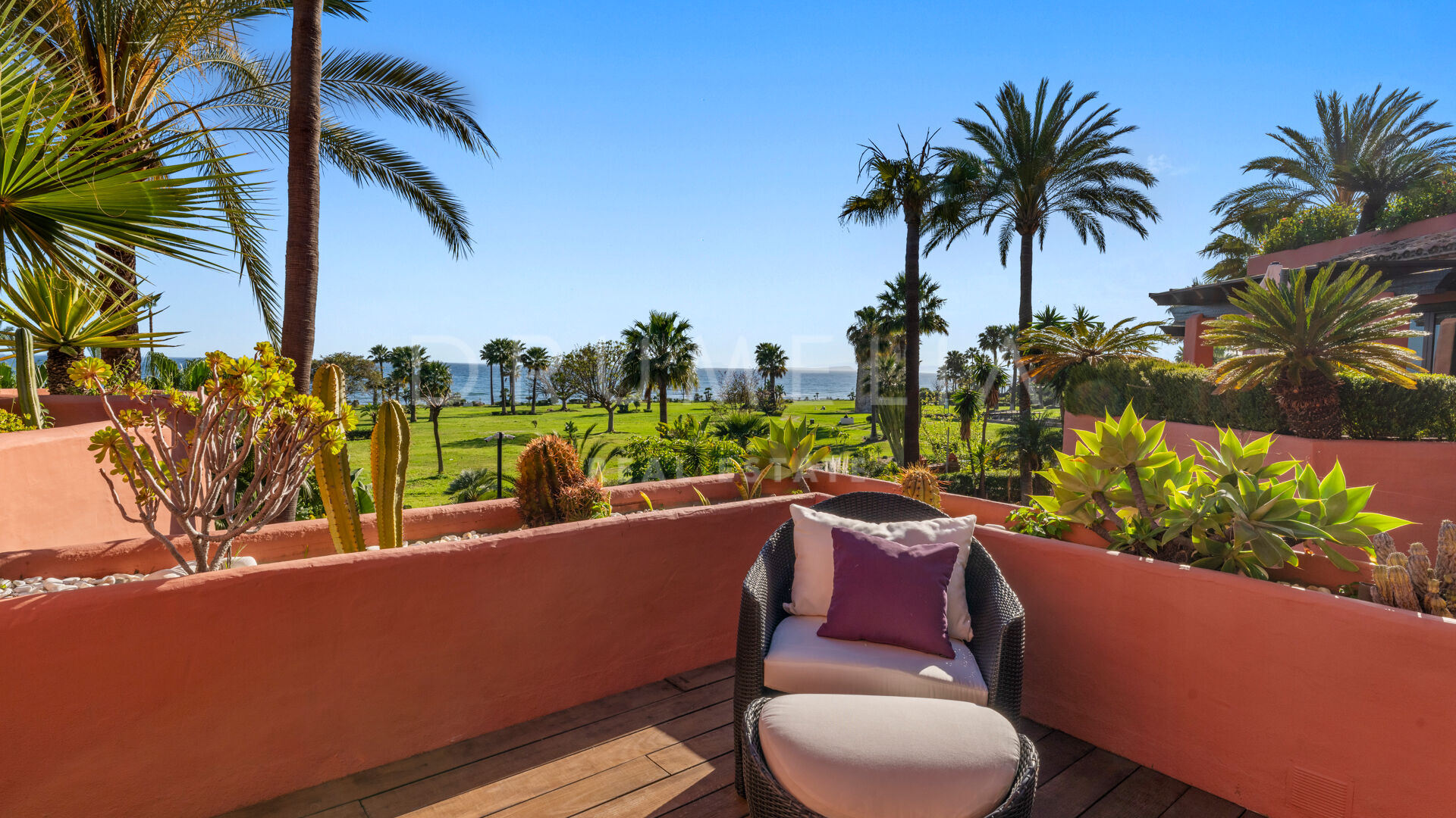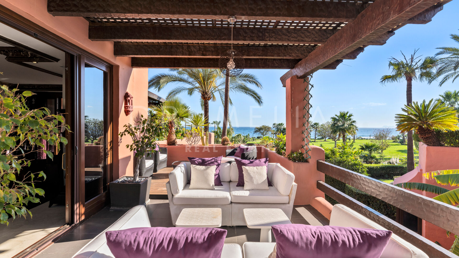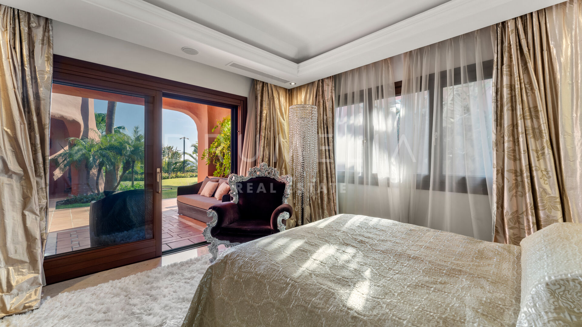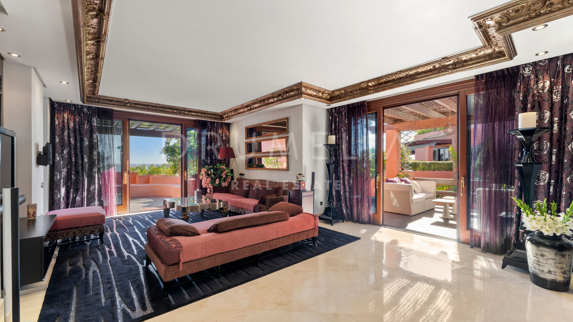 Dit unieke triplex aan het strand ligt in het gewilde wooncomplex Torre Bermeja aan de New Golden Mile van Estepona. Met directe toegang tot het strand en adembenemend uitzicht op zee, biedt het een comfortabele en stijlvolle woonomgeving over drie verdiepingen. De woning beschikt over twee aparte ingangen, twee ruime woonkamers met eethoeken, zes slaapkamers met en-suite badkamers en zes privéterrassen, waaronder een tuingedeelte dat perfect is om buiten te ontspannen. De volledig uitgeruste binnen- en buitenkeukens zijn voorzien van hoogwaardige apparatuur.