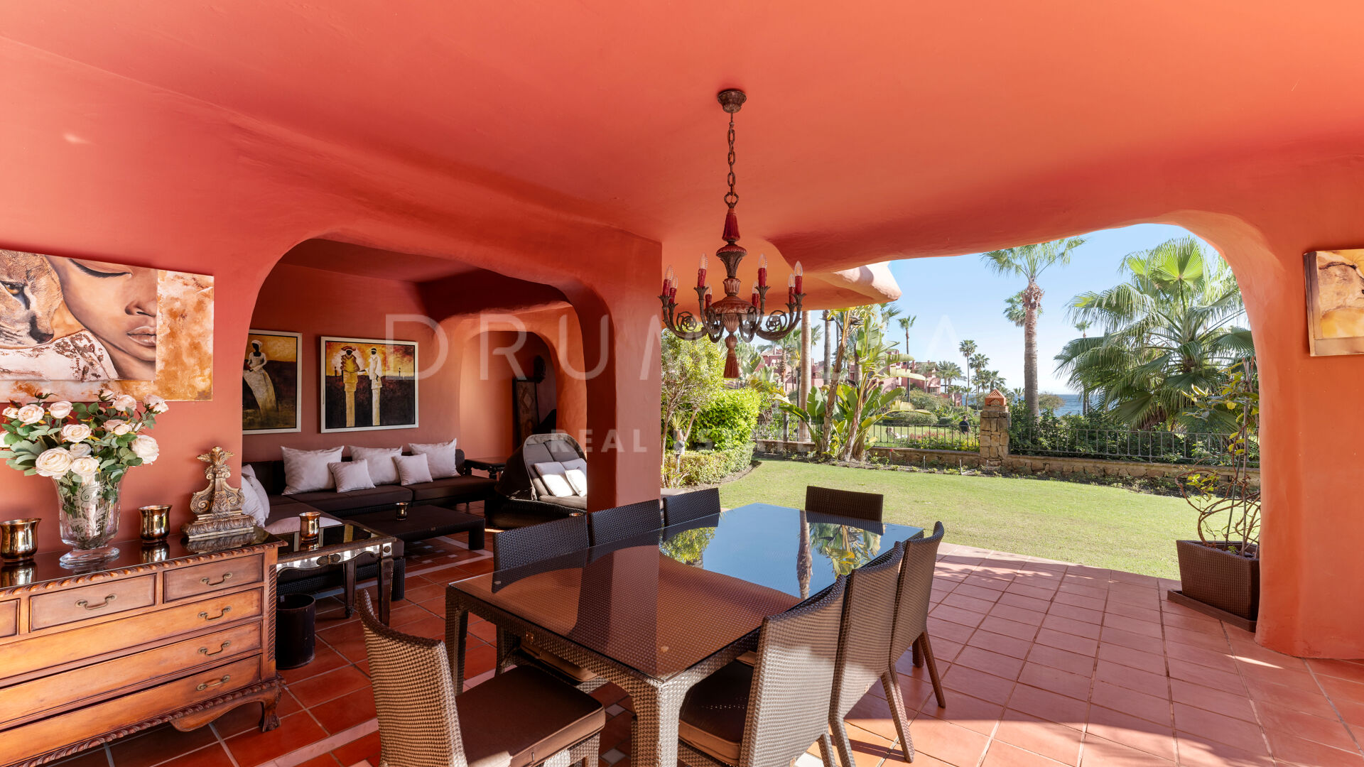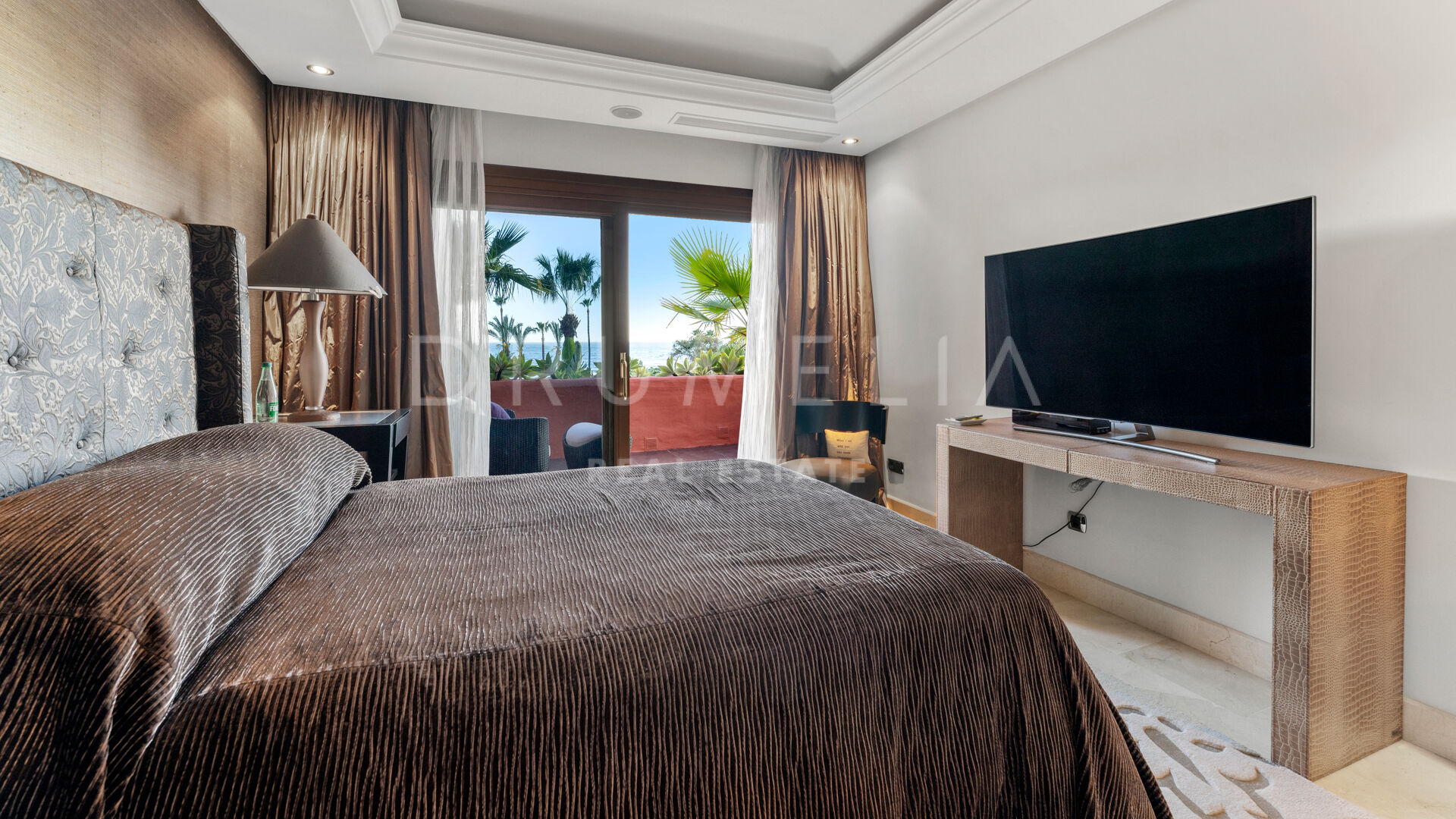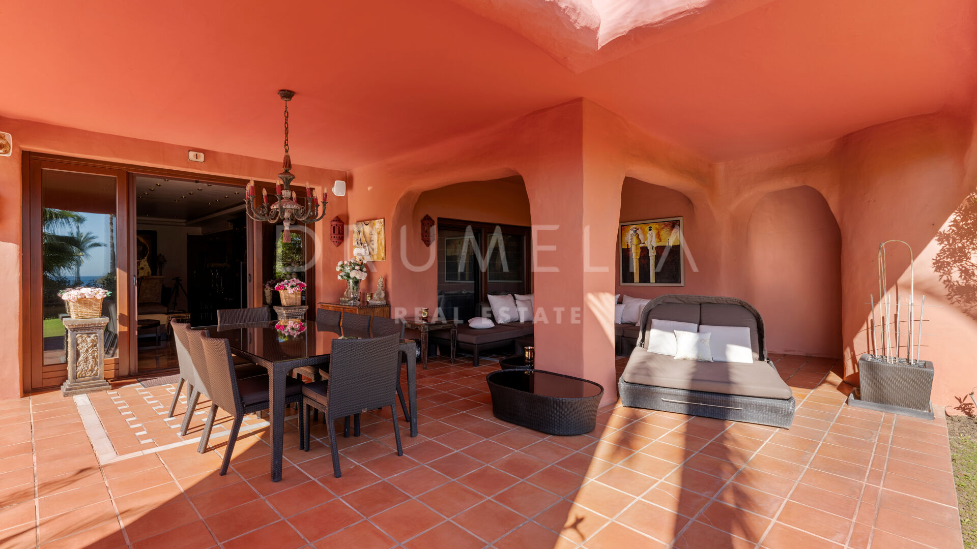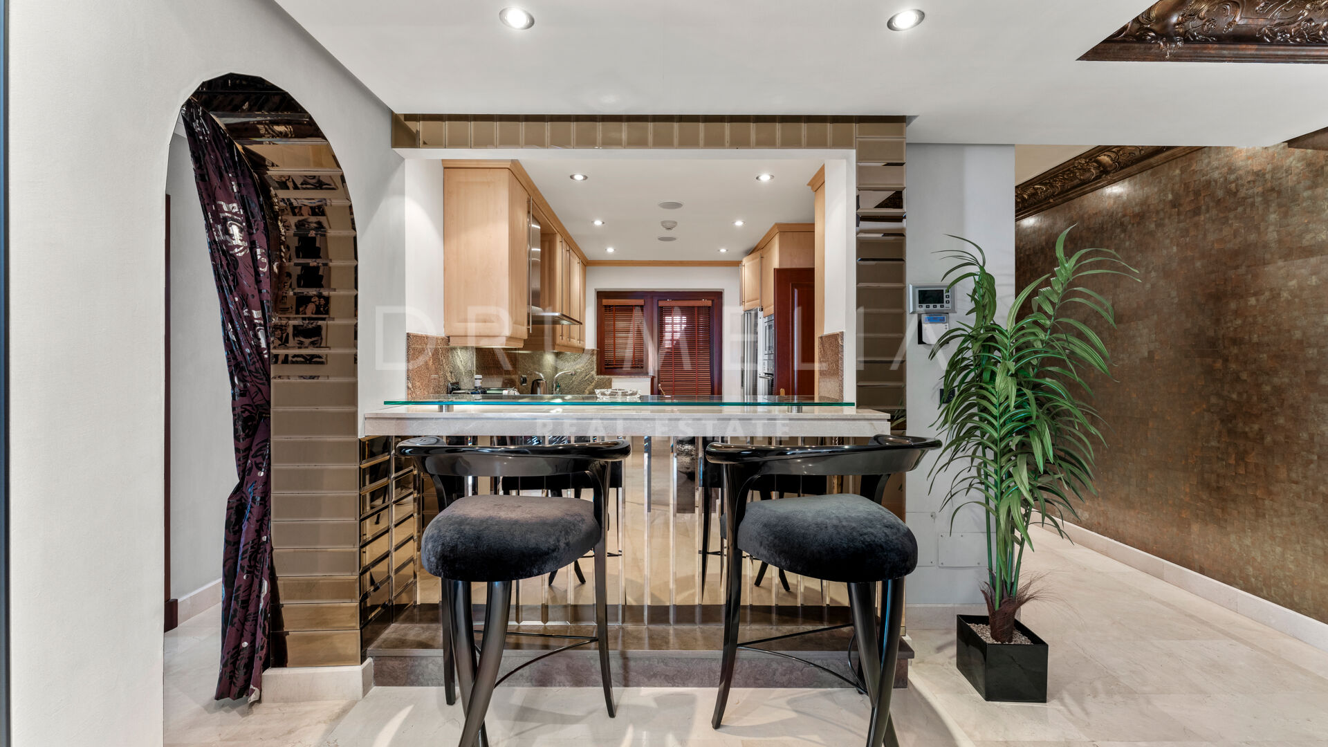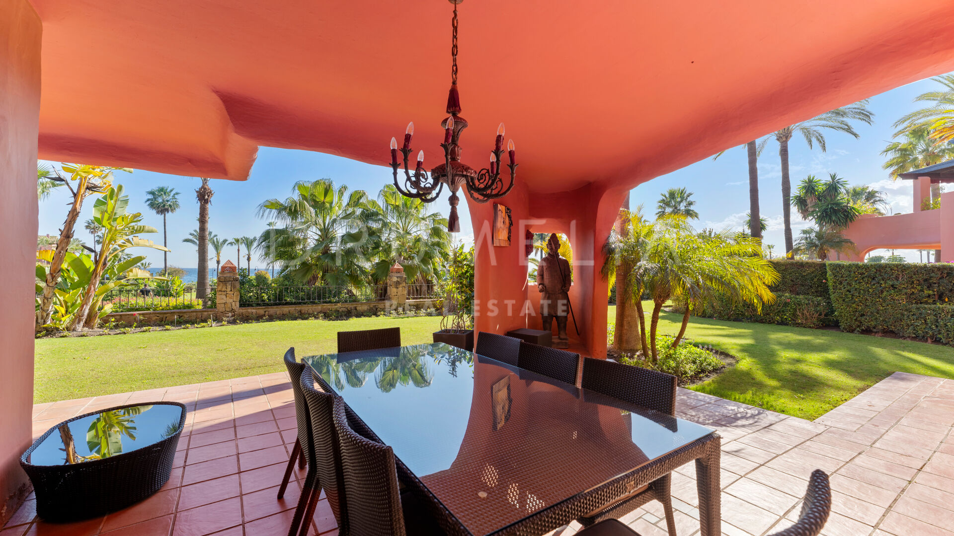 Dit unieke triplex aan het strand ligt in het gewilde wooncomplex Torre Bermeja aan de New Golden Mile van Estepona. Met directe toegang tot het strand en adembenemend uitzicht op zee, biedt het een comfortabele en stijlvolle woonomgeving over drie verdiepingen. De woning beschikt over twee aparte ingangen, twee ruime woonkamers met eethoeken, zes slaapkamers met en-suite badkamers en zes privéterrassen, waaronder een tuingedeelte dat perfect is om buiten te ontspannen. De volledig uitgeruste binnen- en buitenkeukens zijn voorzien van hoogwaardige apparatuur.