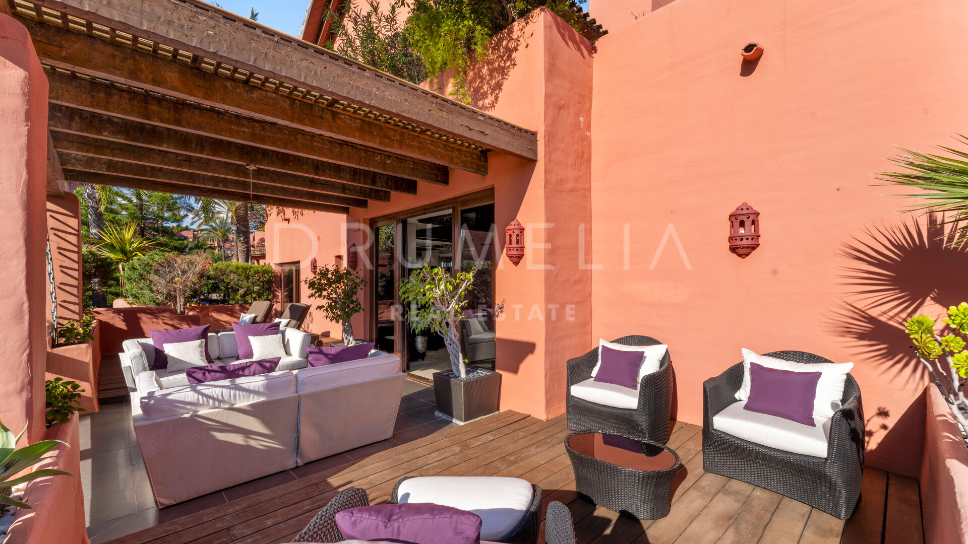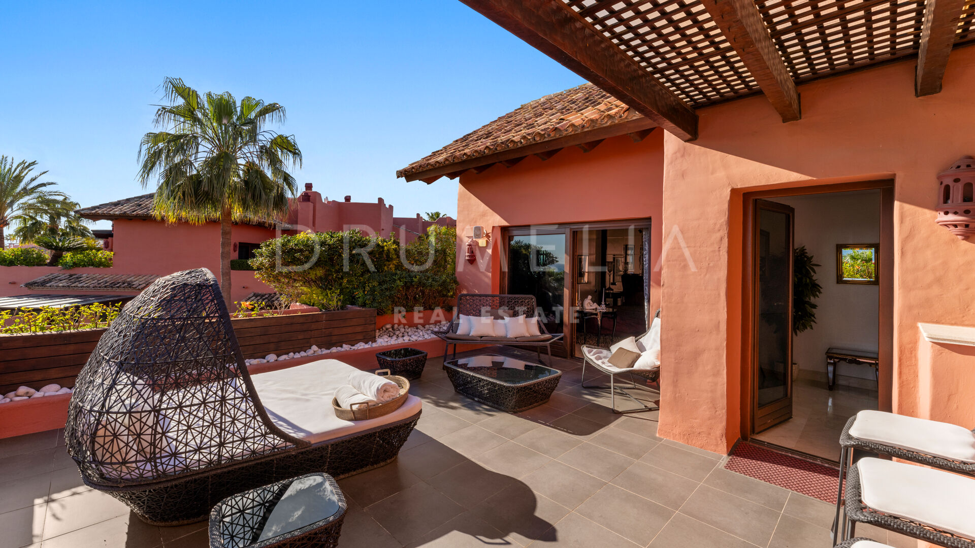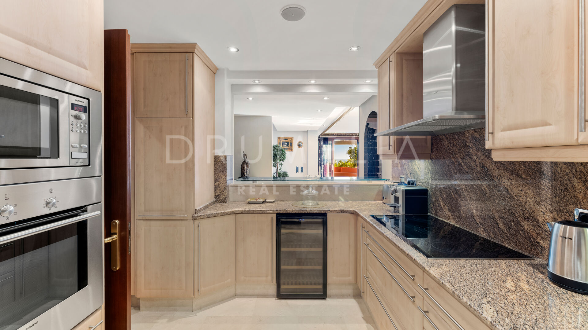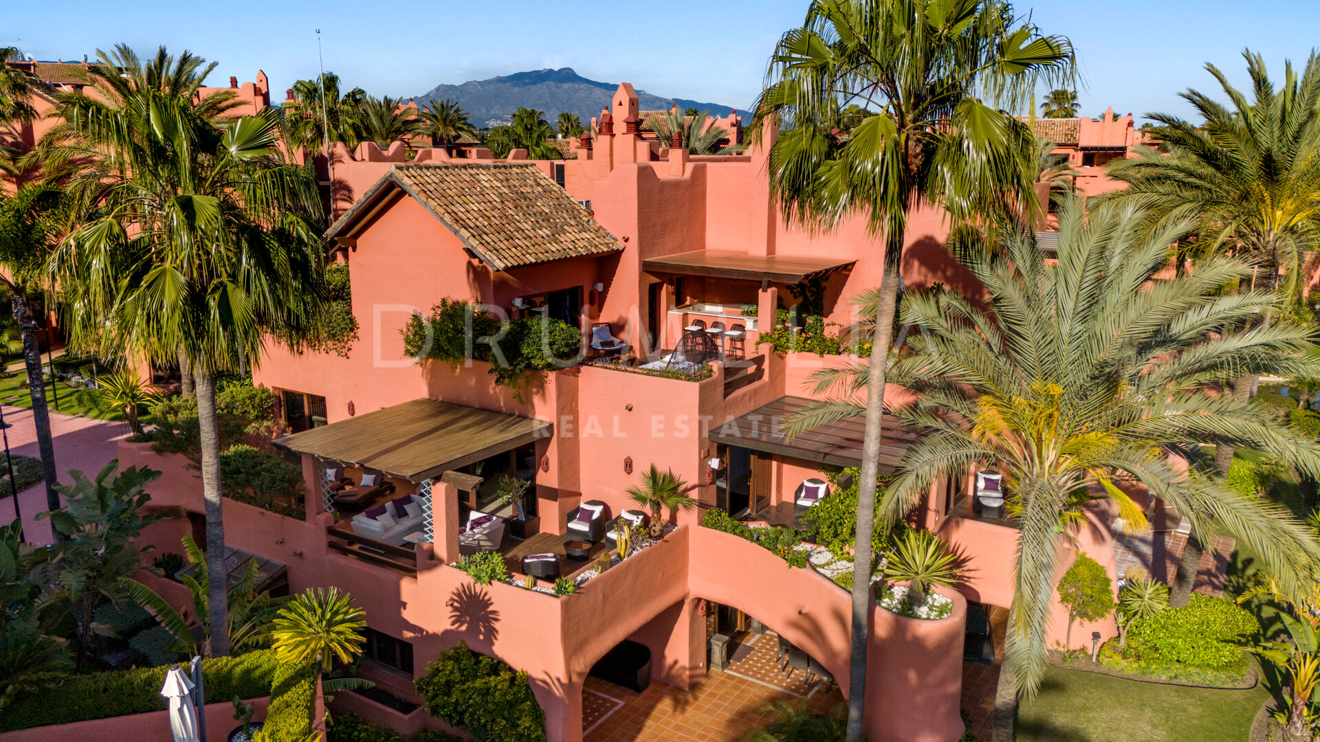 Dit unieke triplex aan het strand ligt in het gewilde wooncomplex Torre Bermeja aan de New Golden Mile van Estepona. Met directe toegang tot het strand en adembenemend uitzicht op zee, biedt het een comfortabele en stijlvolle woonomgeving over drie verdiepingen. De woning beschikt over twee aparte ingangen, twee ruime woonkamers met eethoeken, zes slaapkamers met en-suite badkamers en zes privéterrassen, waaronder een tuingedeelte dat perfect is om buiten te ontspannen. De volledig uitgeruste binnen- en buitenkeukens zijn voorzien van hoogwaardige apparatuur.