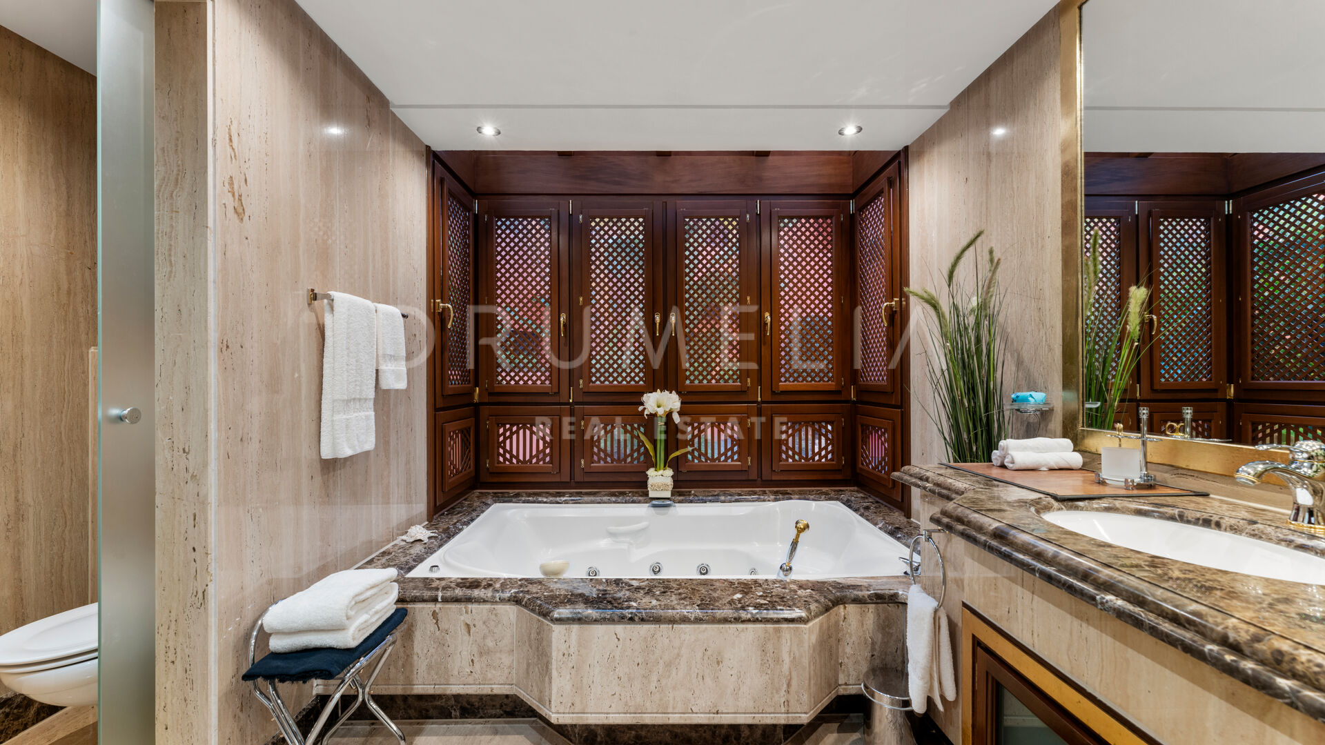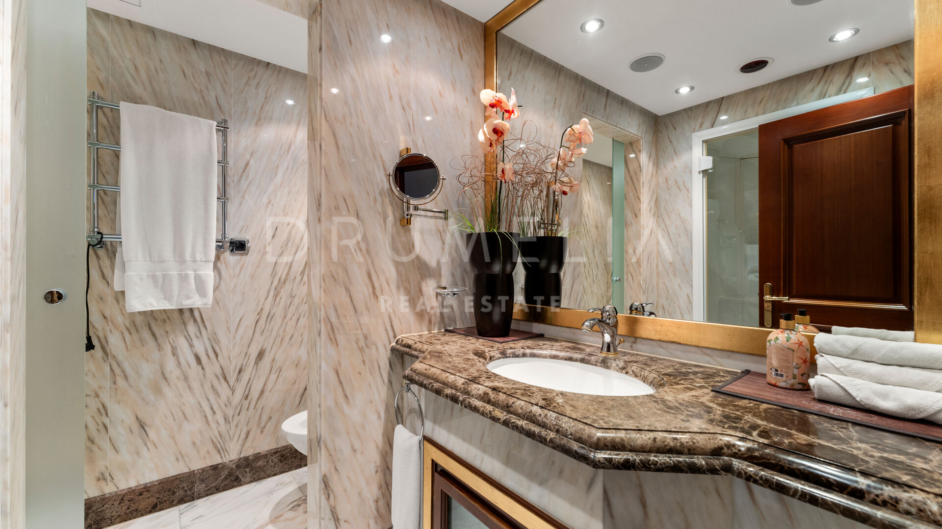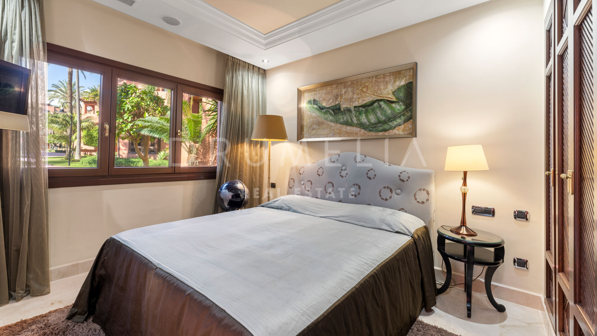 De woning is ontworpen voor comfort het hele jaar door en is voorzien van vloerverwarming, klimaatbeheersing, marmeren vloeren en ingebouwde kasten. Er zijn ook drie ondergrondse parkeerplaatsen en drie bergingen. De omheinde gemeenschap biedt prachtig onderhouden tuinen, binnen- en buitenzwembaden, een fitnessruimte, een sauna en 24-uurs beveiliging.