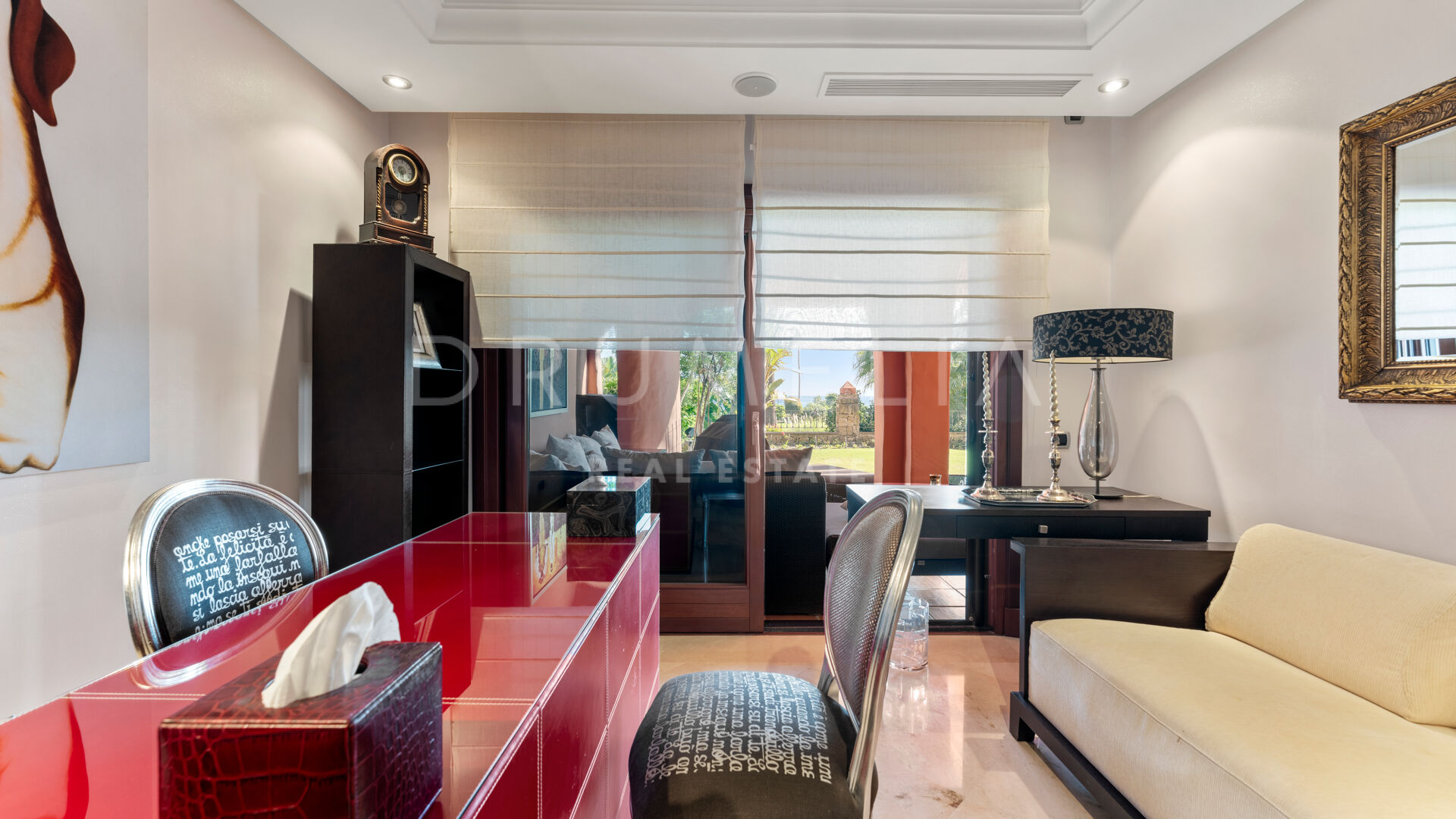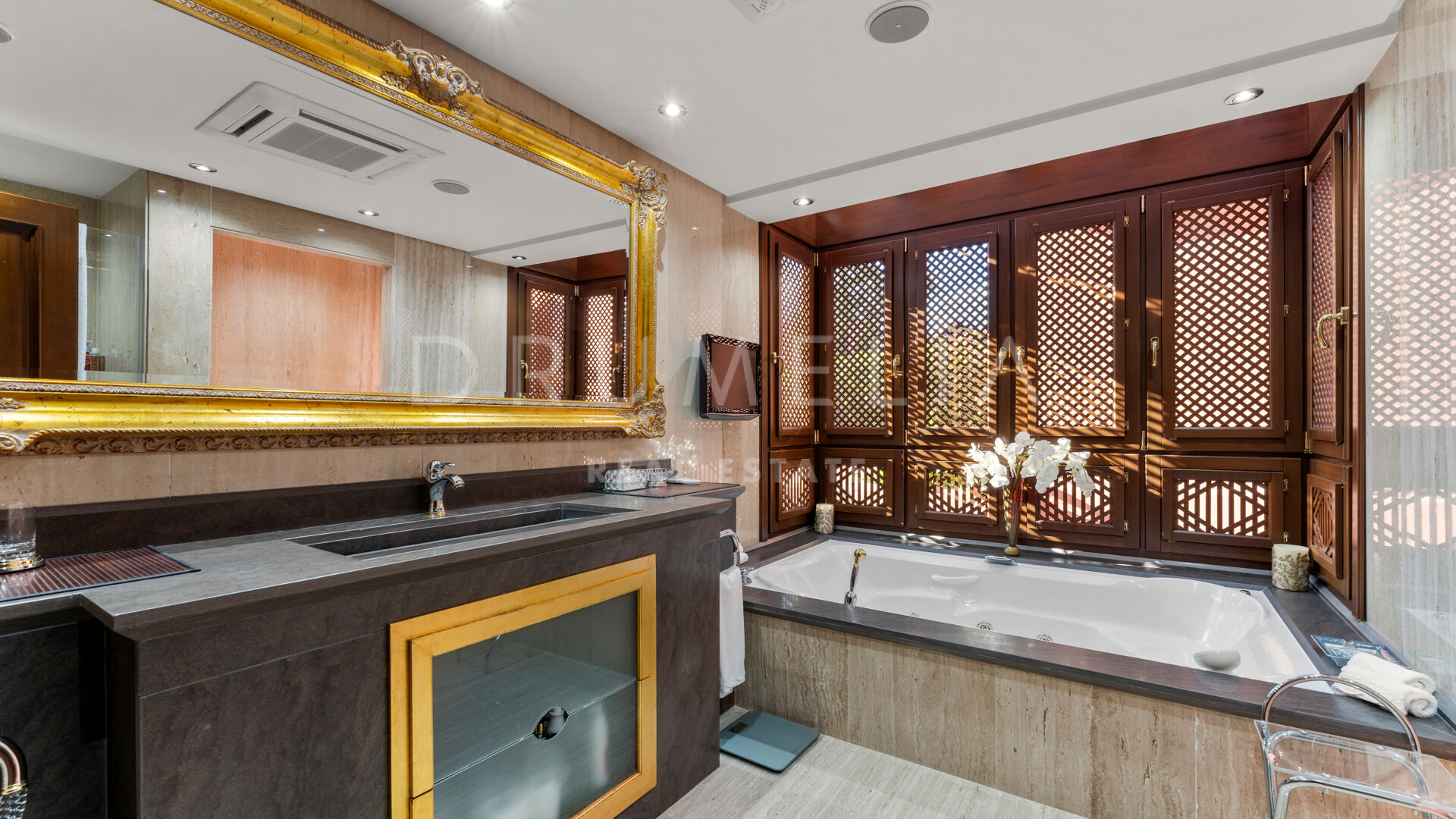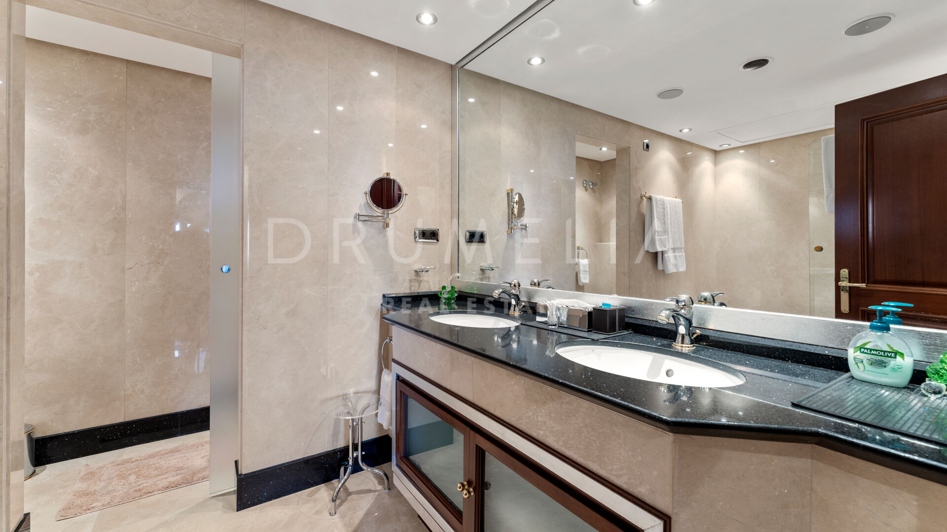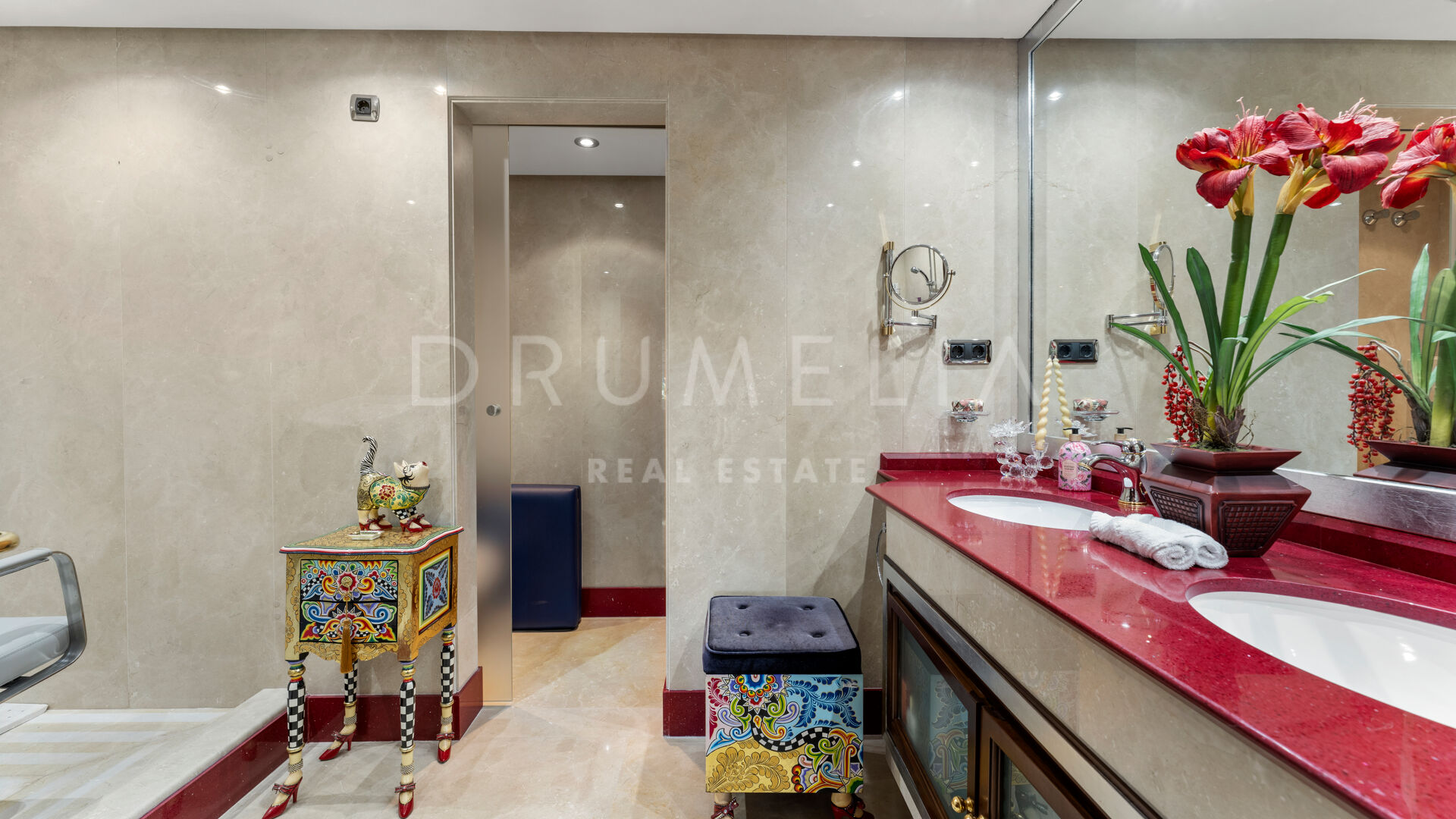 De woning is ontworpen voor comfort het hele jaar door en is voorzien van vloerverwarming, klimaatbeheersing, marmeren vloeren en ingebouwde kasten. Er zijn ook drie ondergrondse parkeerplaatsen en drie bergingen. De omheinde gemeenschap biedt prachtig onderhouden tuinen, binnen- en buitenzwembaden, een fitnessruimte, een sauna en 24-uurs beveiliging.